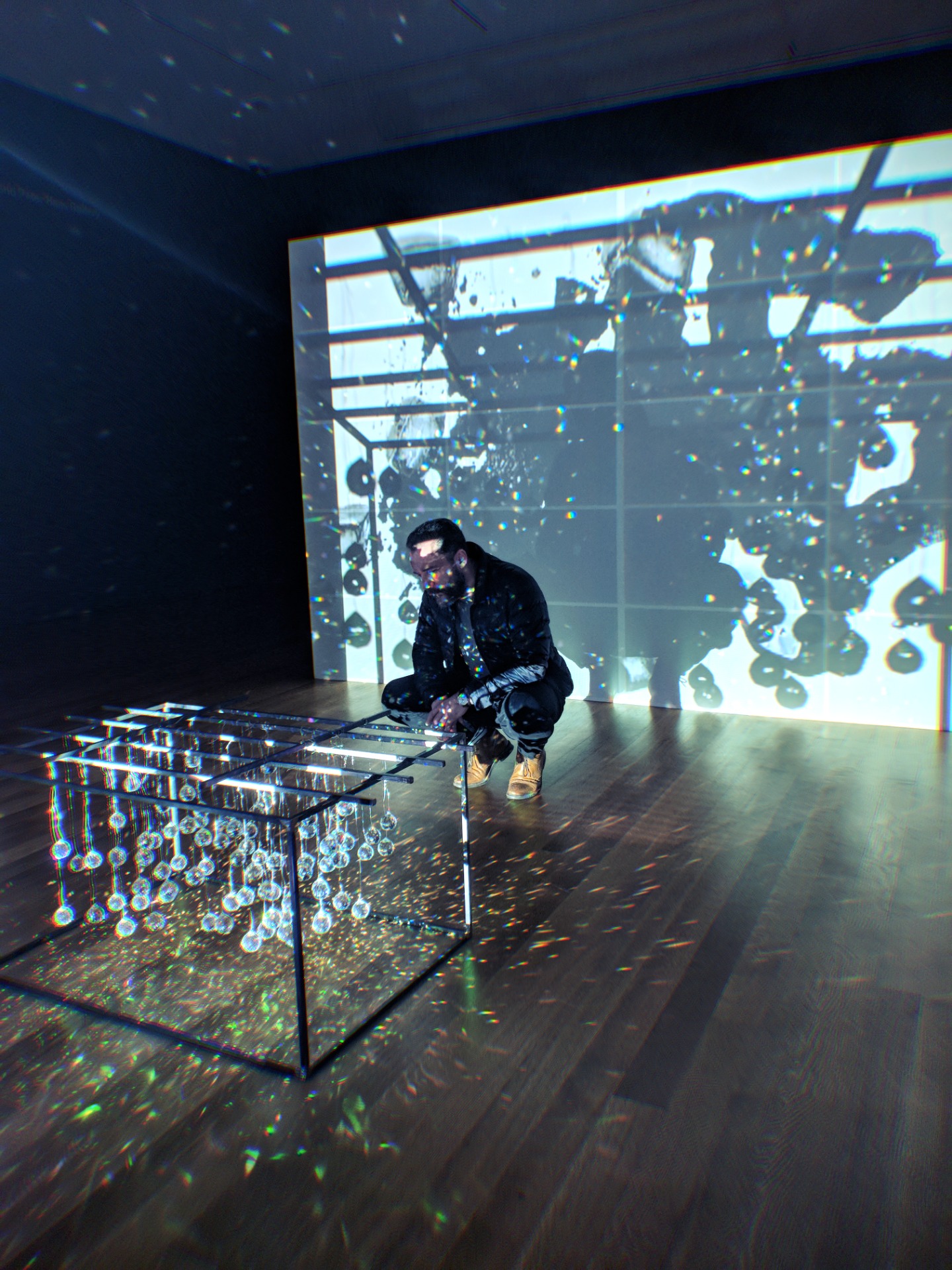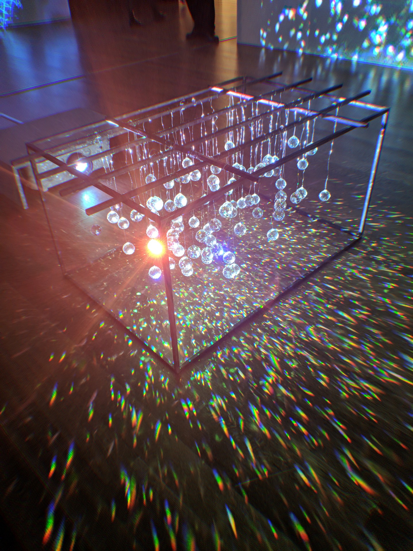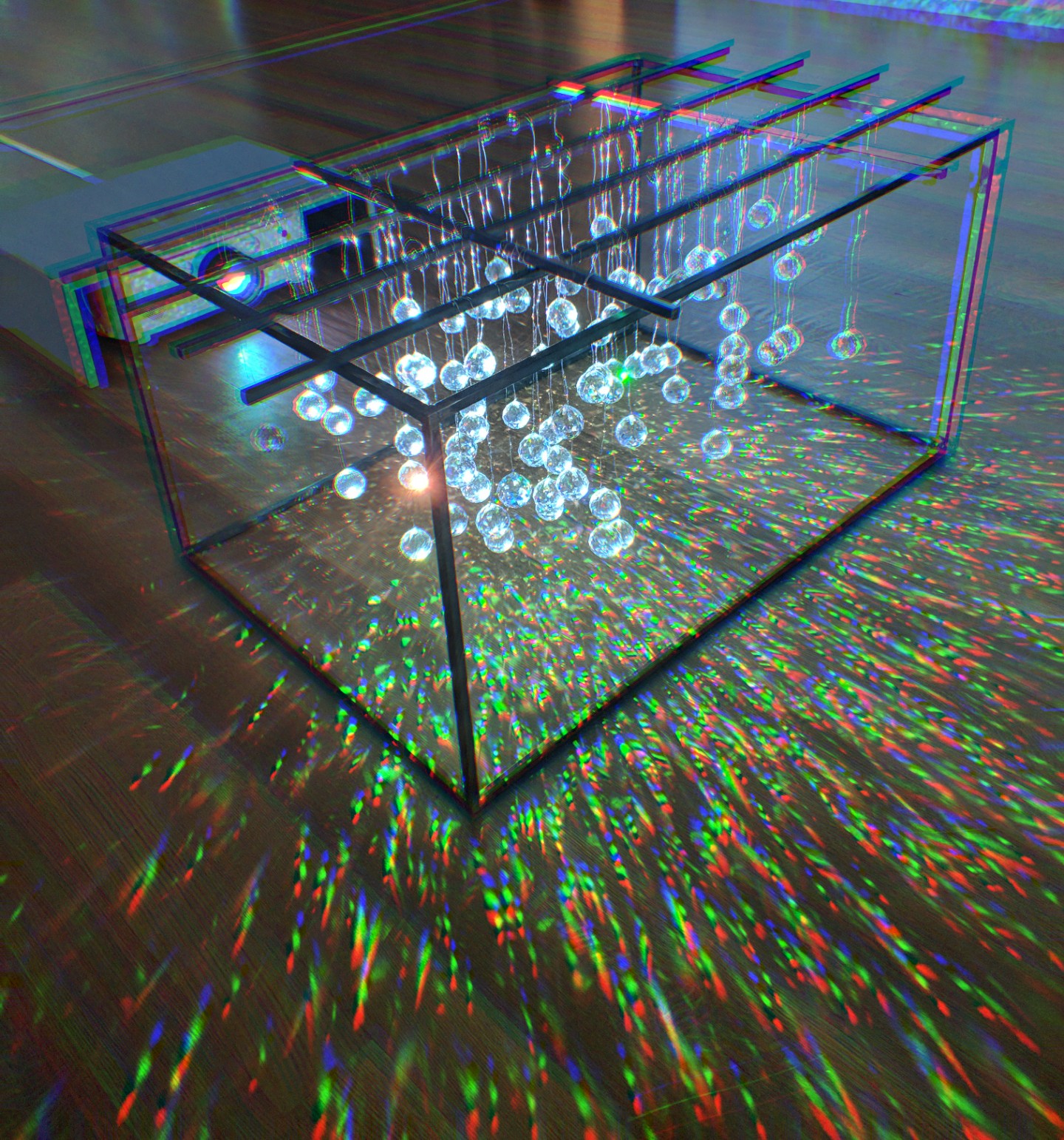 Part of a four videos on custom screens, two custom benches and crystal sculpture; two wooden theater boxes with video ; fifteen ink drawings on paper; three oil stick drawings on paper, and two china marker wall drawings Soundtrack and voice: Joan Jonas Sami yoik singing: Ánde Somby Piano and additional sound effects: Jason Moran