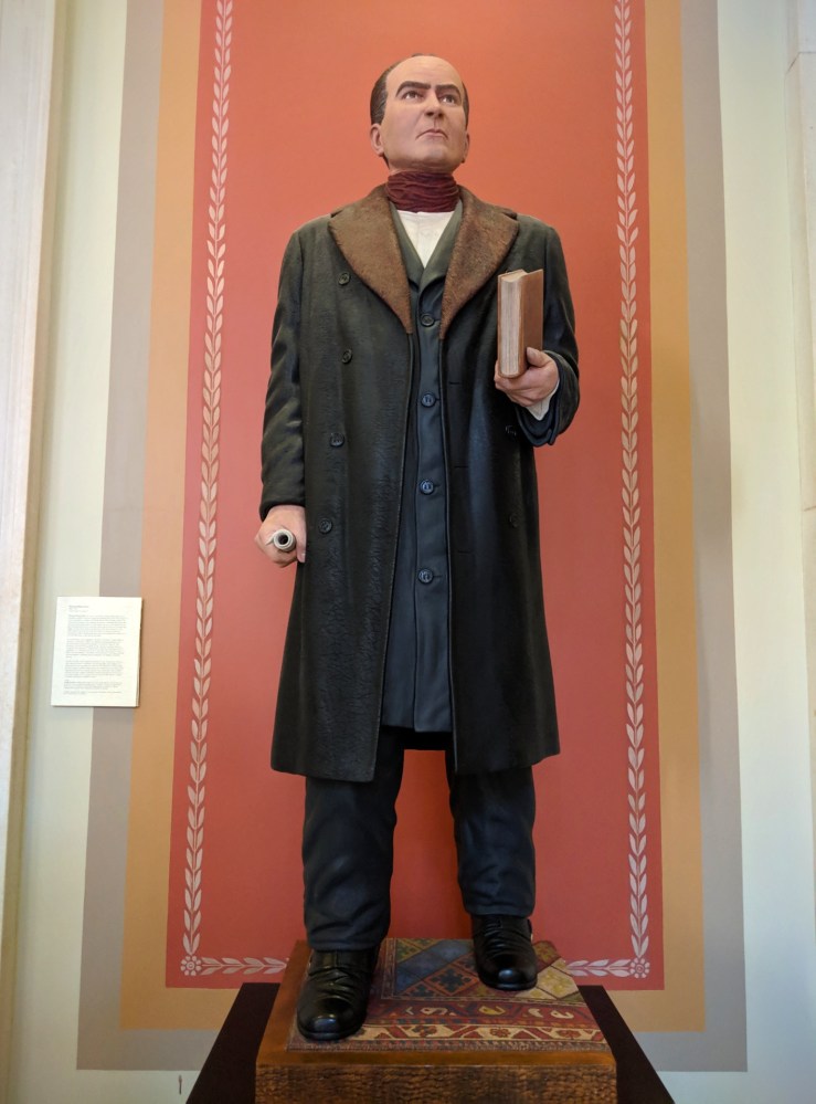 The Mercer Museum is a six-storey reinforced concrete castle designed by Henry Mercer (1856-1930), completed in 1916. Henry Mercer was a child of Doylestown who, having started his professional life as a lawyer, went on to become an archeologist, historian, avid collector, dog lover and a successful tile-designer.