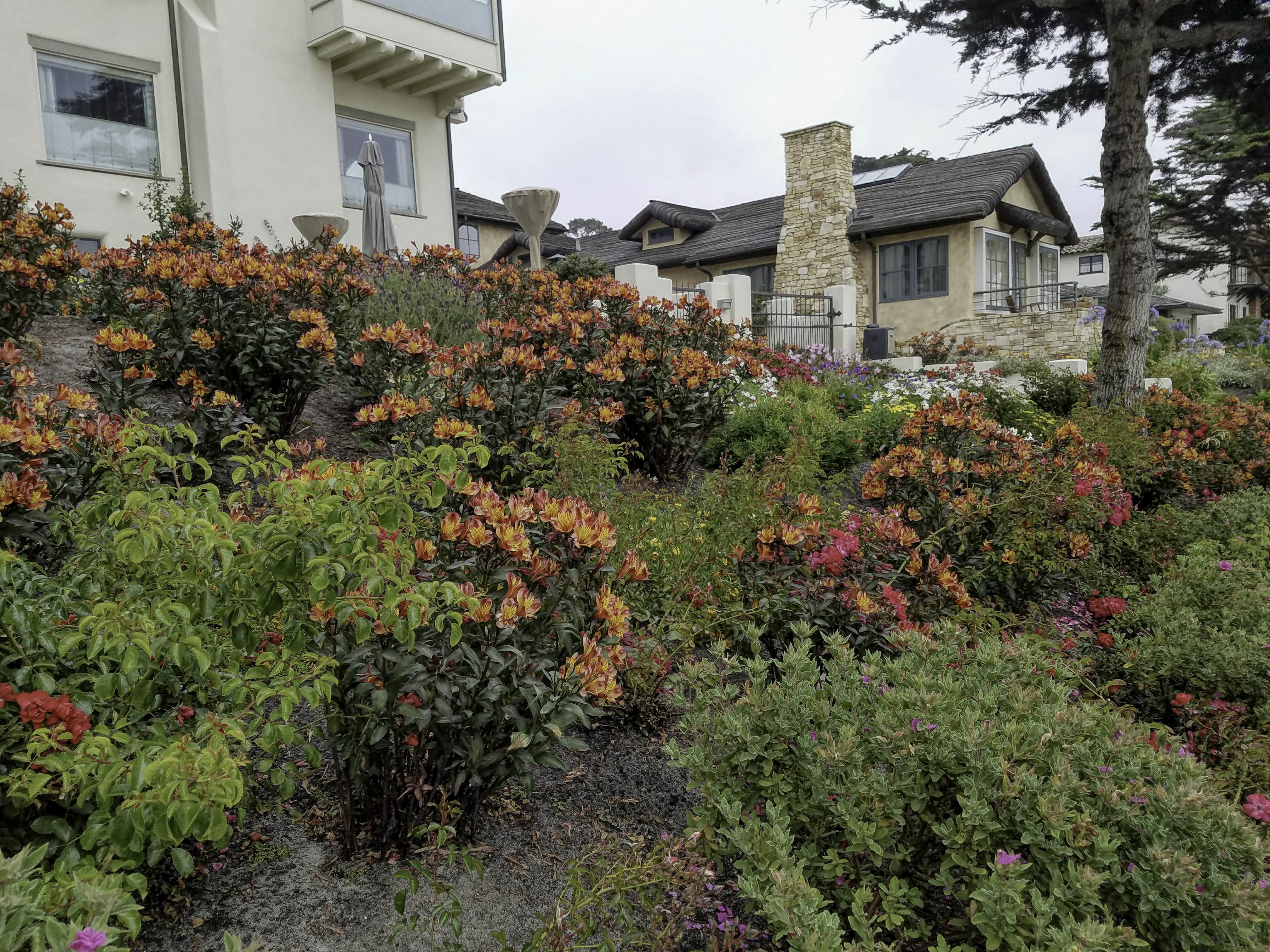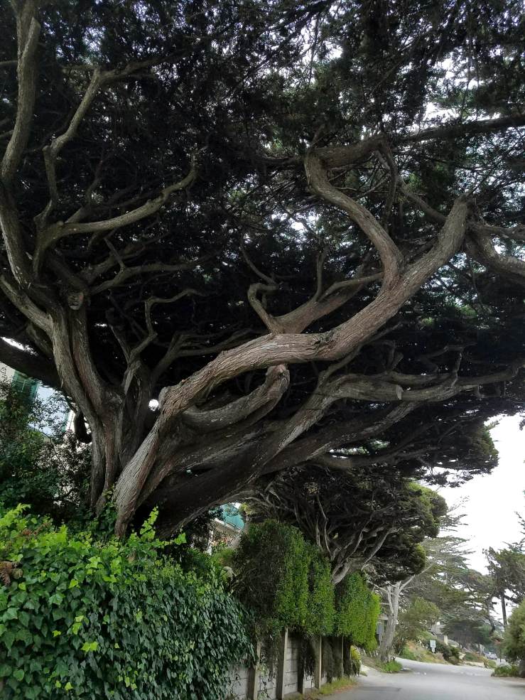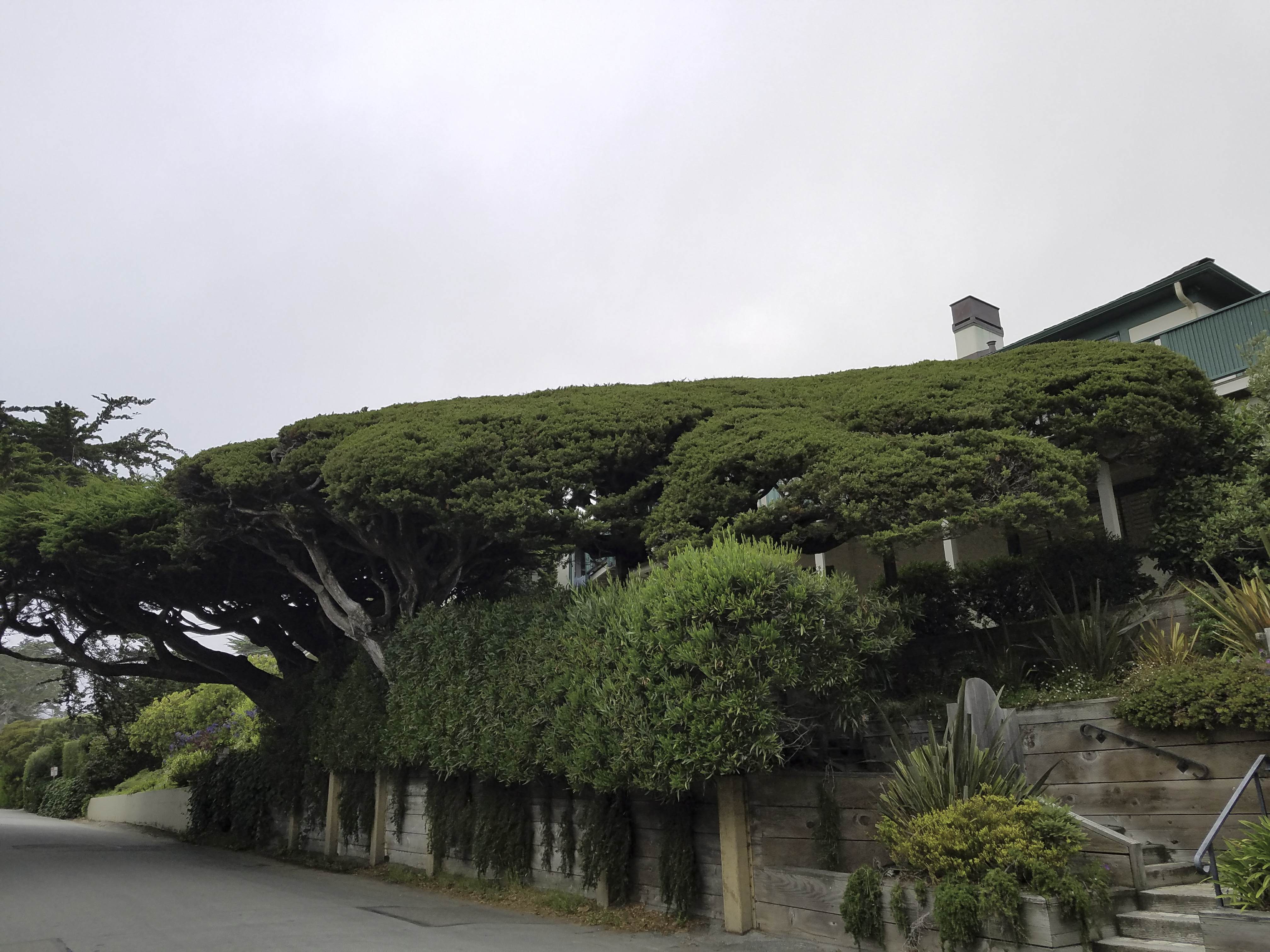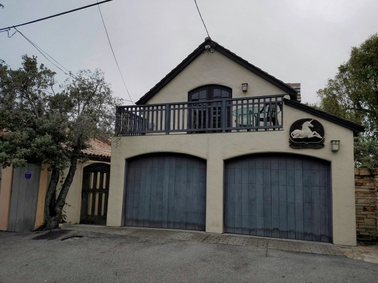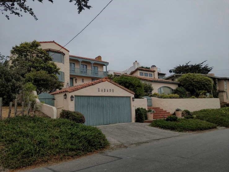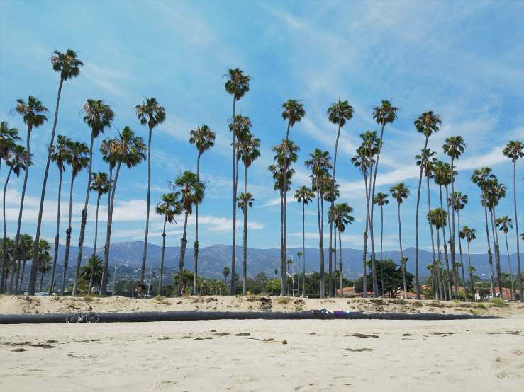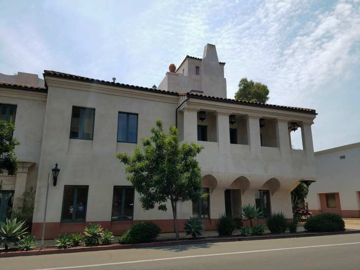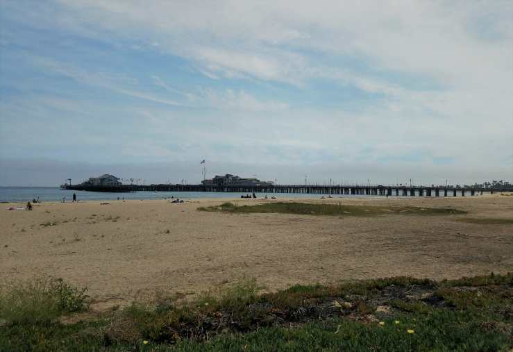 On Anacapa Street, attracted by the curvy beauty of this building which, incredibly, is a parking lot. All straight toward the beach and the Chase Palm Park, lined with rows of palm trees as far as the eye can see. And a faraway look at Stearns Wharf; we walked the other way, keeping our distance.
