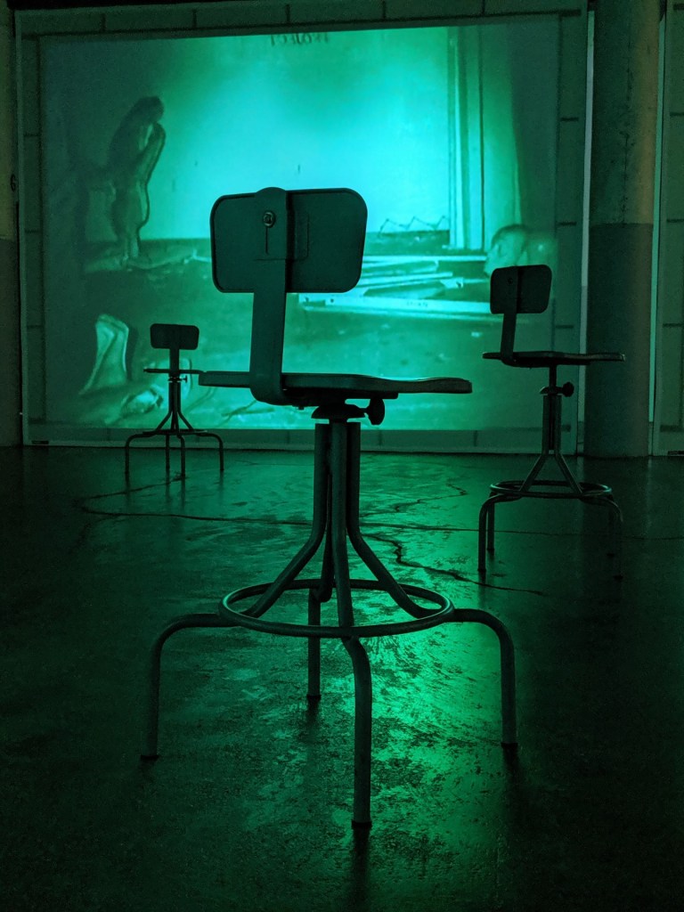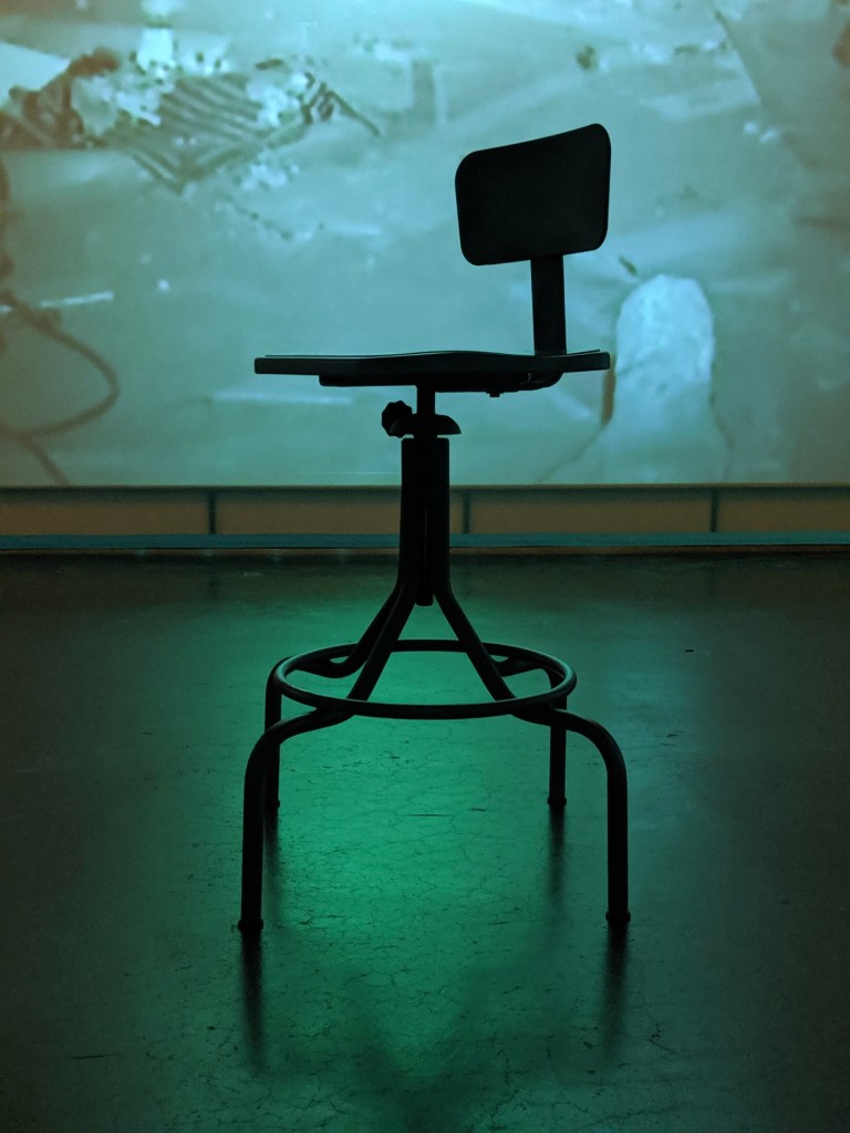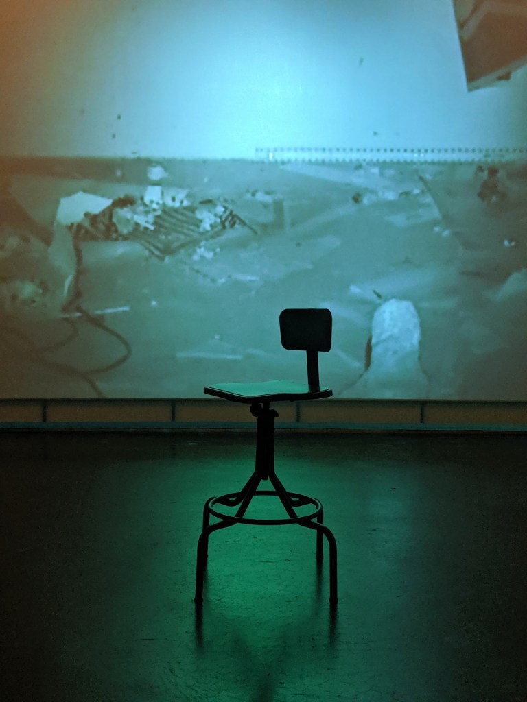 ”What triggered this piece were the mice. We had a big influx of field mice that summer in the house and in the studio … They were so plentiful even the cat was getting bored with them … I was sitting around the studio being frustrated because I didn’t have any new ideas, and I decided that you just have to work with what you’ve got. What I had was this cat and the mice, and I happened to have a video camera in the studio that had infrared capability. So I set it up and turned it on at night and let it run when I wasn’t there, just to see what I’d get … I thought to myself why not make a map of the studio and its leftovers … it might be interesting to let the animals, the cat and the mice, make the map of the studio. So I set the camera up in different locations around the studio where the mice tended to travel just to see what they would do amongst the remnants of the work.” [source: Bruce Nauman: Mapping the Studio I]