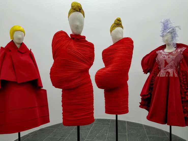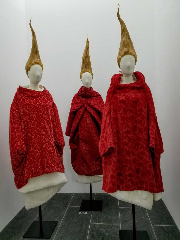 Of all her divisive designs on view, perhaps the most alienating one was the black overall lace coat from the ”Ceremony of Separation” line. Comments from fellow visitors ranged from politely dismissive to downright ironic – totally missing the poetry behind the layers of pleats and ribbons and children’s dresses sewn together into a strong emotional statement: accepting loss as part of life and finding comfort in traditions and rituals.