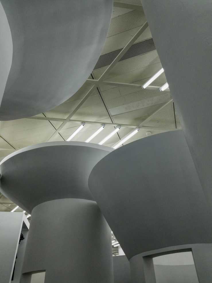 Note from the guide: <<Mu (emptiness) is suggested through the architectural leitmotif of the circle, which in Zen Buddhism symbolizes the void, and ma (space) is evoked through the inter – play of structural forms. Ma expresses void as well as volume, a thing with and without shape — not defined by concrete boundaries. Amplified by the stark whiteness of the gallery surfaces, the visual effect is one of both absence and presence.>>