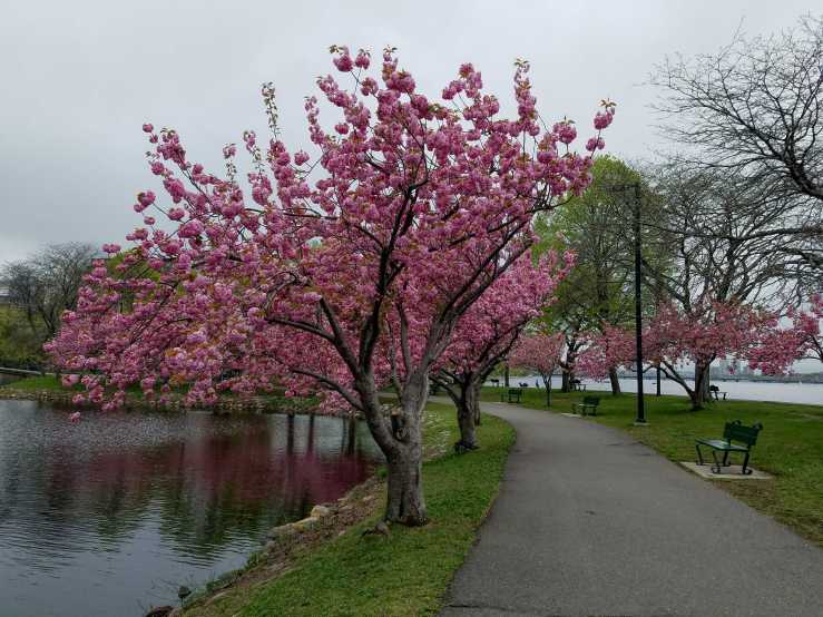 There is so much going on, on the Charles River Esplanade – but that’s only my guess, quiet as it was on that cloudy May Day. On warmer days, the Hatch Cell becomes alive with concerts and plays. There are many sports and playgrounds alongside, and paddling on the river. People are walking and jogging, others play on the lawn. Families and friends share picnics. There is music and laughter and basking in the sun. But, for now, let us enjoy a precious moment of peace, as transient and fragile as those pink cherry blossoms.