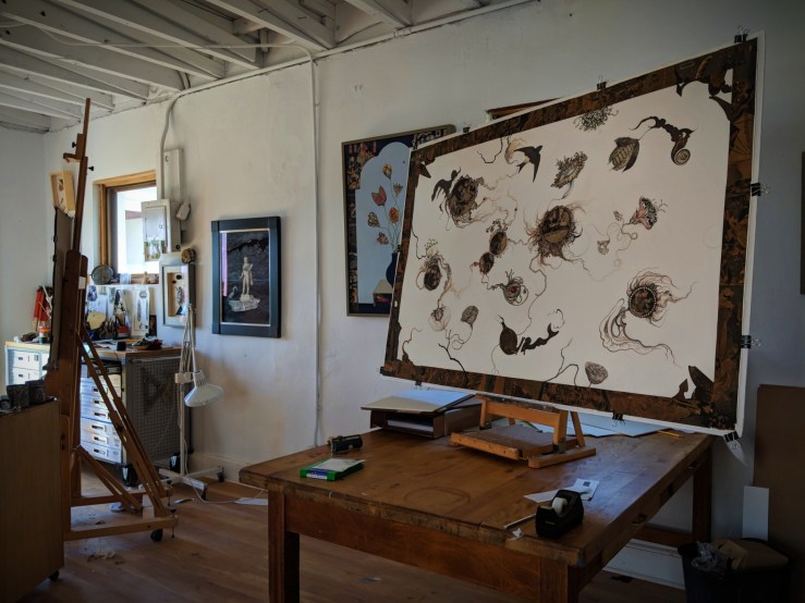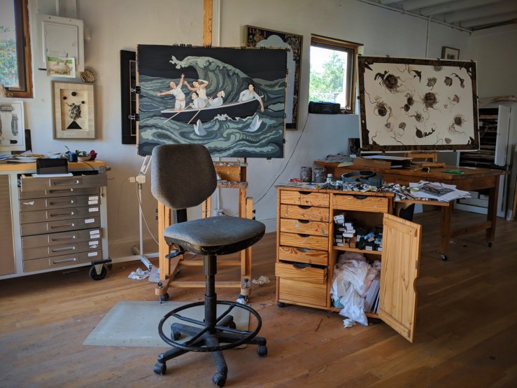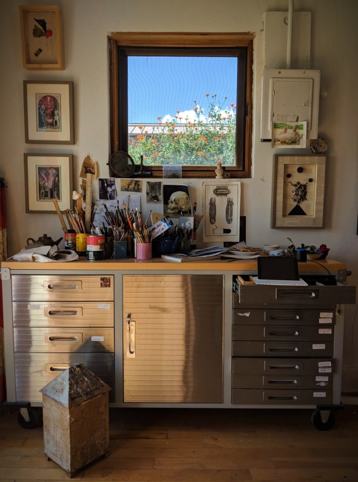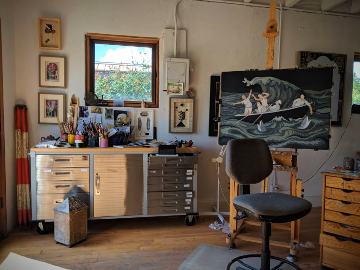 I quite enjoy visiting an artist’s studio, there is something very charming and simultaneously voyeuristic about it. Going ”behind the scenes”, walking amidst art and creative clutter, the excitement of getting to see first-hand new works in progress, not to mention meeting the artists themselves.