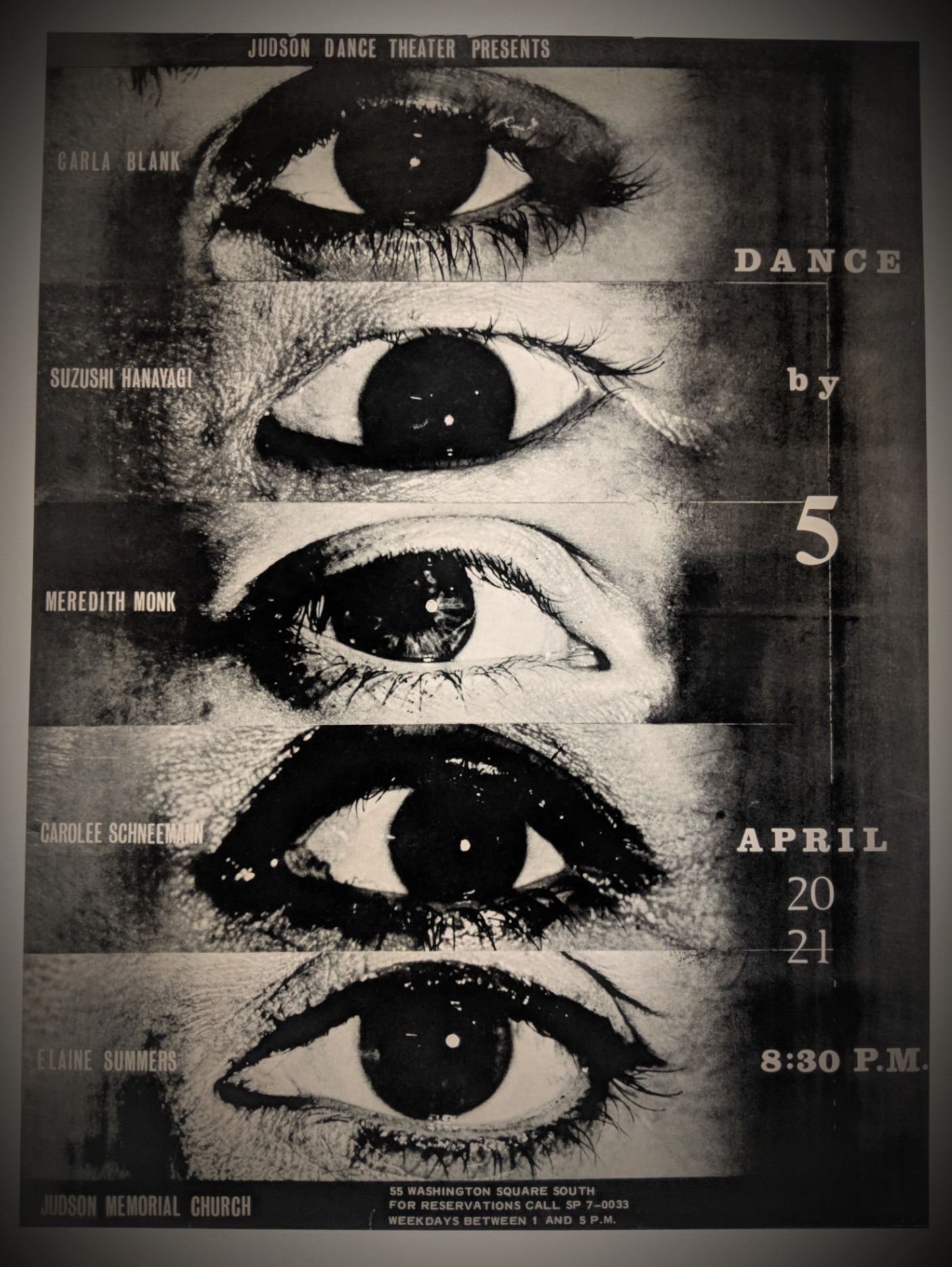 Judson Dance Theater: The Work Is Never Done was a walk through the history of Judson Dance Theater with performances, films, photographs, posters and other archival materials. It was also an introduction to the very beginnings of the life and work of artists I have been admiring for some time – and others that were completely new to me.