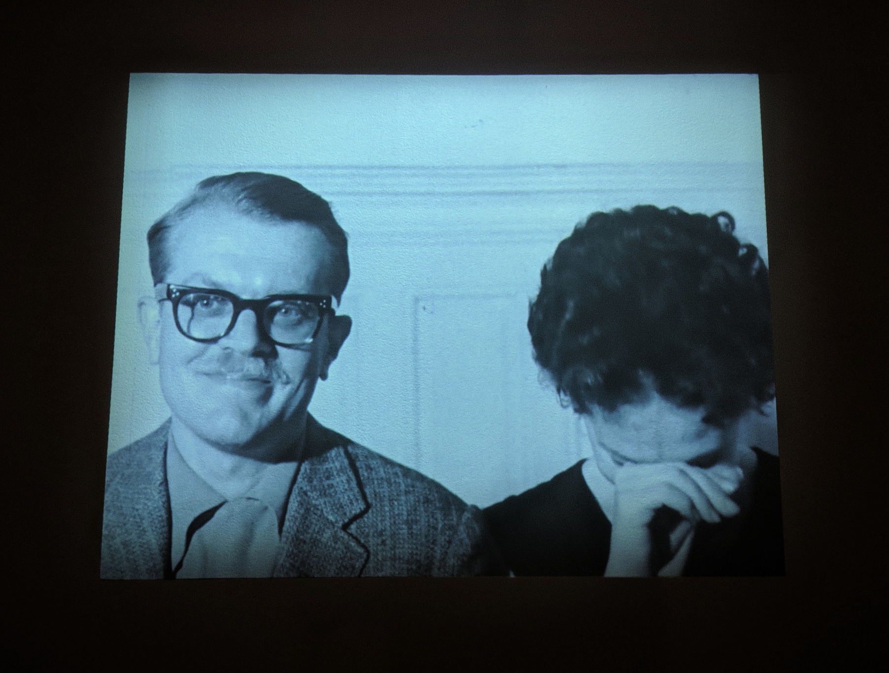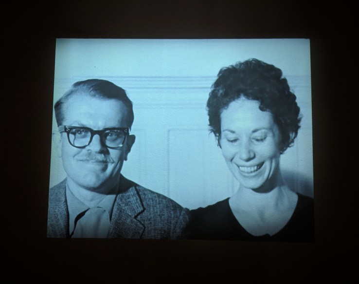 Instructed by the filmmaker Gene Friedman not to talk or hide their faces, Judith Dunn and Robert Ellis Dunn looked directly at the camera with deadpan expressions until they both broke into laughter. Judith Dunn was a choreographer and member of Merce Cunningham’s company, while Robert Dunn was a teacher and Cunningham’s accompanist.