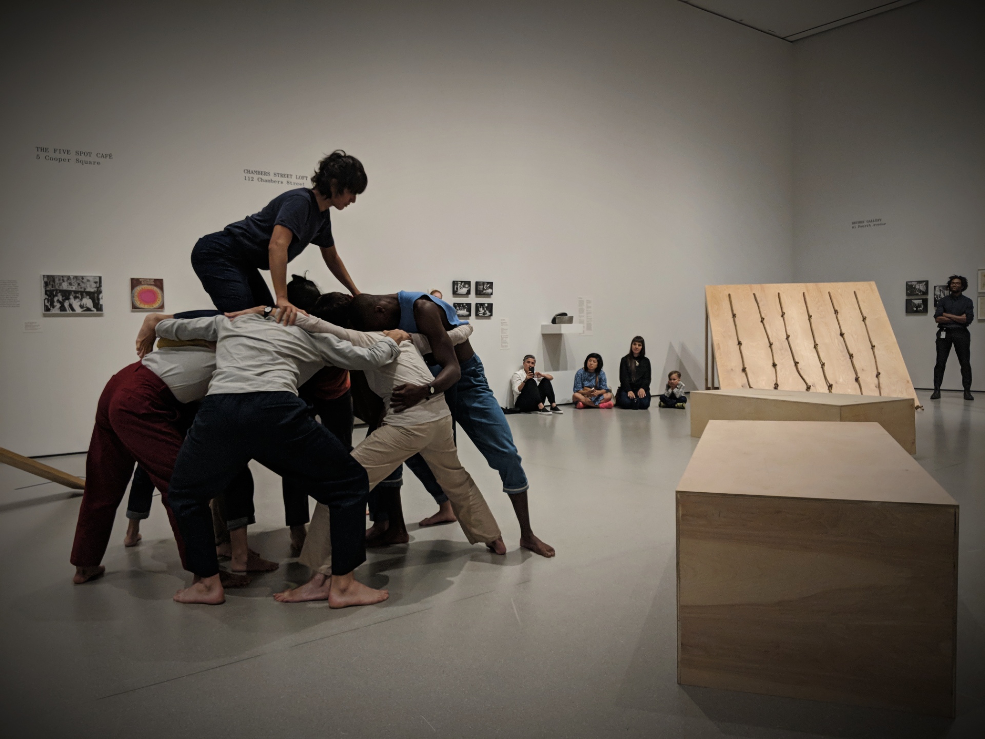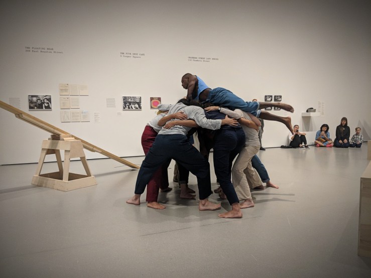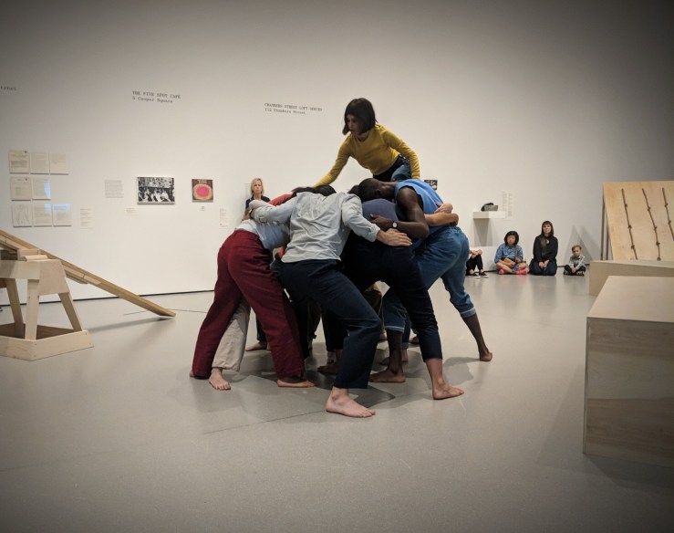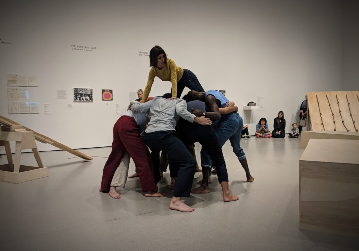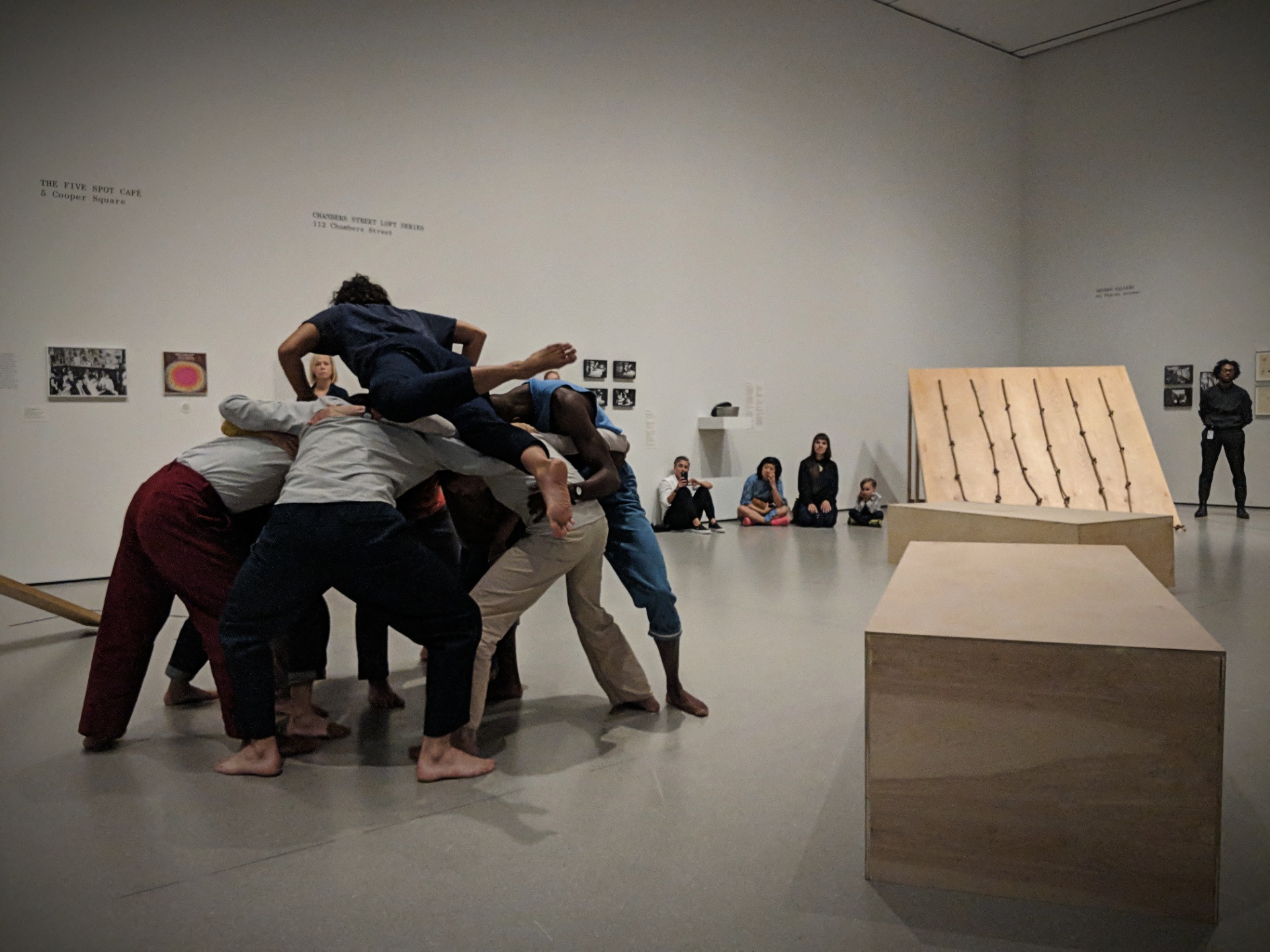 ”For a brief period in the early 1960s, a group of choreographers, visual artists, composers, and filmmakers gathered in Judson Memorial Church, a socially engaged Protestant congregation in New York’s Greenwich Village, for a series of workshops that ultimately redefined what counted as dance. The performances that evolved from these workshops incorporated everyday movements—gestures drawn from the street or the home; their structures were based on games, simple tasks, and social dances. Spontaneity and unconventional methods of composition were emphasized. The Judson artists investigated the very fundamentals of choreography, stripping dance of its theatrical conventions, and the result, according to Village Voice critic Jill Johnston, was the most exciting new dance in a generation.” – [source: MoMA]