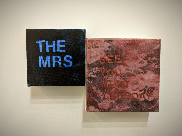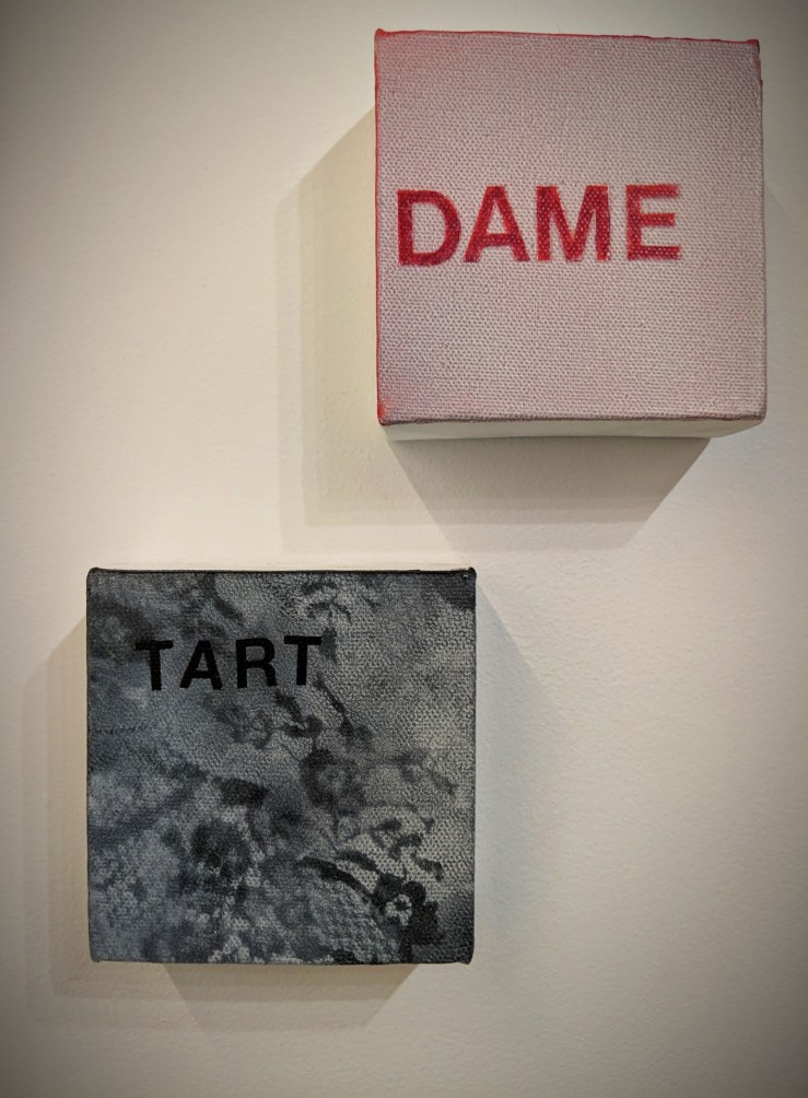 Betty Tompkins’ Women’s Words, 2016. Installation, acryl on paper, acryl on canvas