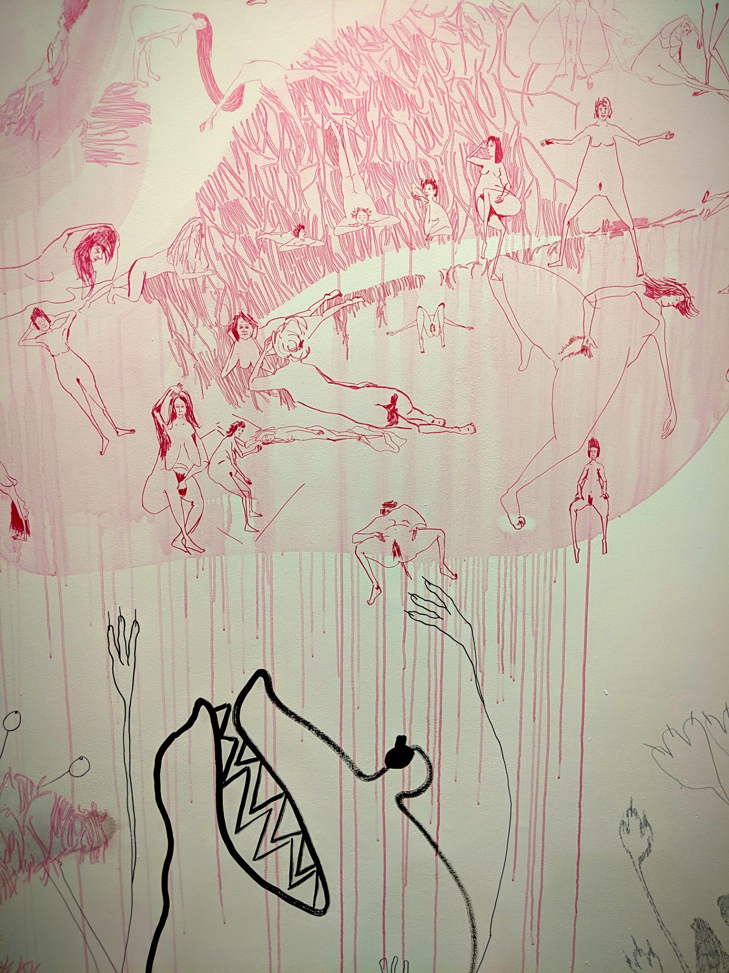 Sevda Chkoutova’s Untitled, 2018 (Detail). India ink, painted on wall over two floors