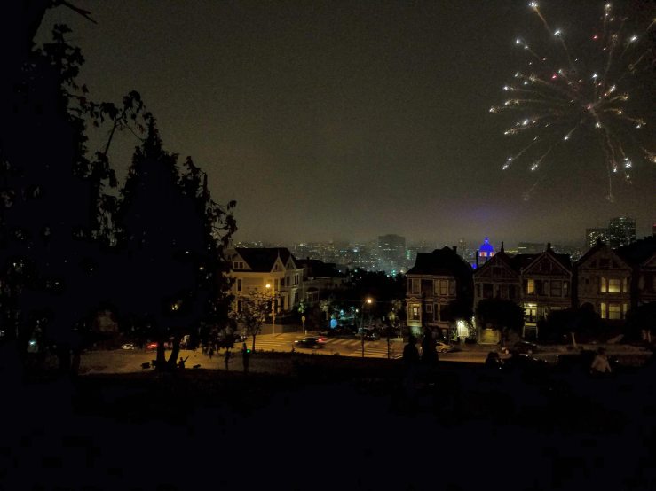 Walking towards the mansion in the corner of Divisadero St. & Vallejo St., down to Lombard St. at Cow Hollow for a pizza and then back to Alamo Square Park to watch the 4th of July fireworks.