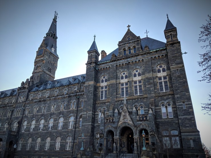 Sitting on a cliff overlooking the Potomac River, an imposing Gothic structure – Gothic Revival to be exact, the Healy Hall was built between 1877-1879 and named after Patrick Francis Healy, the 27th president of Georgetown University.