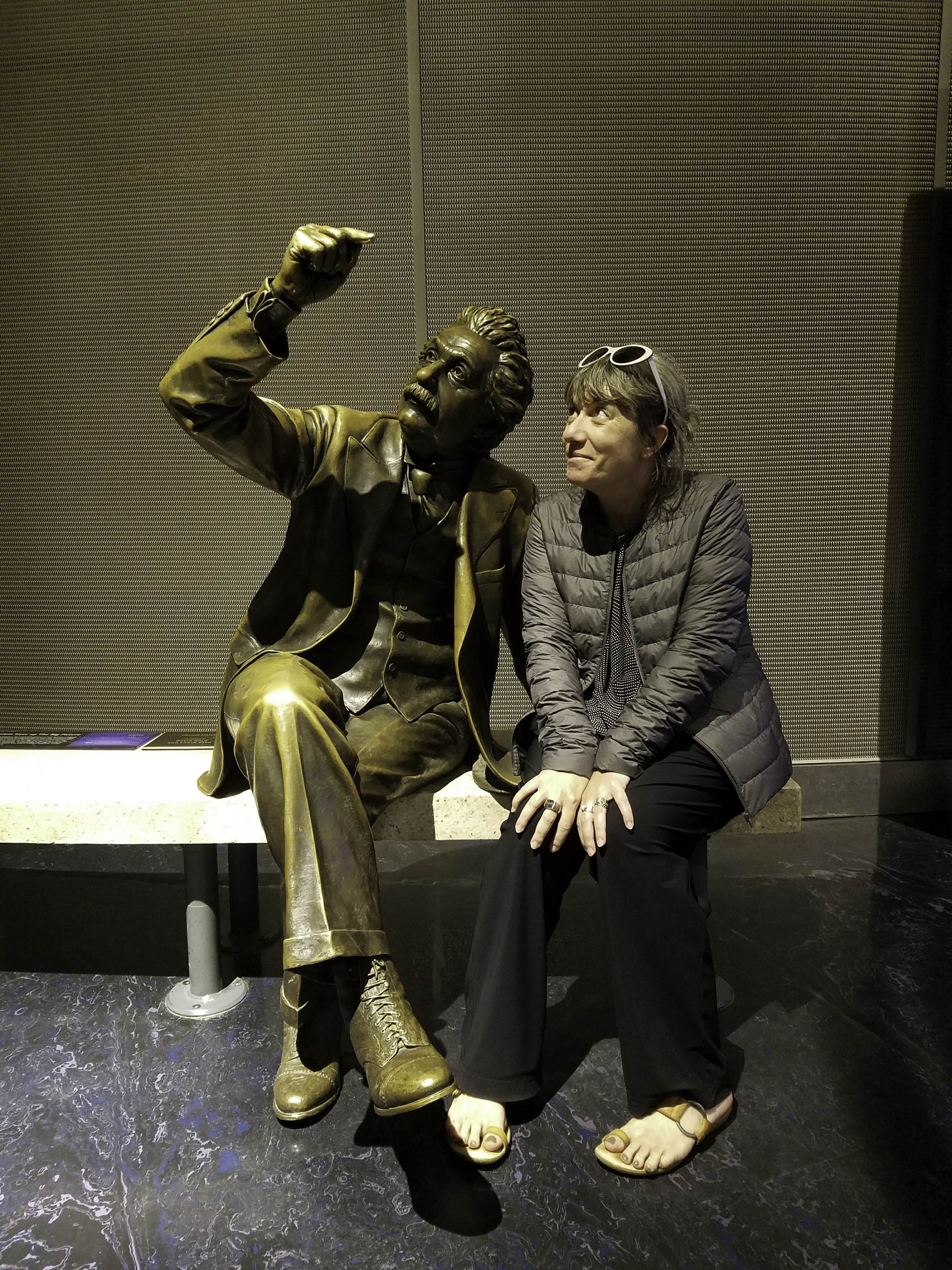 The six astronomers featured on the monument are among the most influential and important in history. The six figures represent the Greek astronomer Hipparchus (about 125 B.C.), Nicolaus Copernicus (1473-1543), Galileo Galilei (1564-1642), Johannes Kepler (1571-1630), Isaac Newton (1642-1727), and John Herschel (1738-1822). Albert Einstein was considered for inclusion, but planers ultimately decided it would be inappropriate to feature someone still alive (the monument was completed in 1934; Einstein died in 1955). [sources: The Living New Deal & Griffith Observatory]