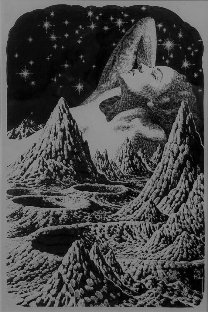 ”He came out of his coma. We left a sketch pad and pencils by the bed. He did a drawing, he went back into the coma, and died.”– Lail Finlay, Virgil Finlay’s daughter