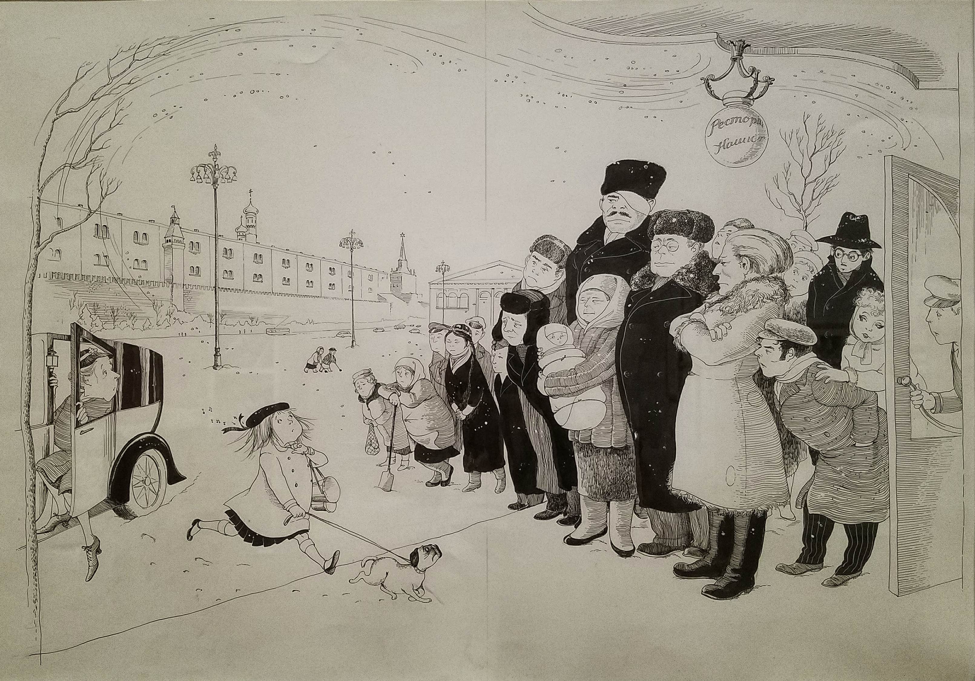 Final illustration for ”I always stay at the National whenever I am in Moscow”, 1959