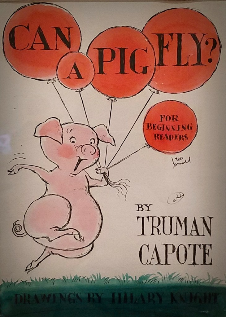 Cover illustration for Truman Capote’s manuscript Can a Pig Fly?, 1958