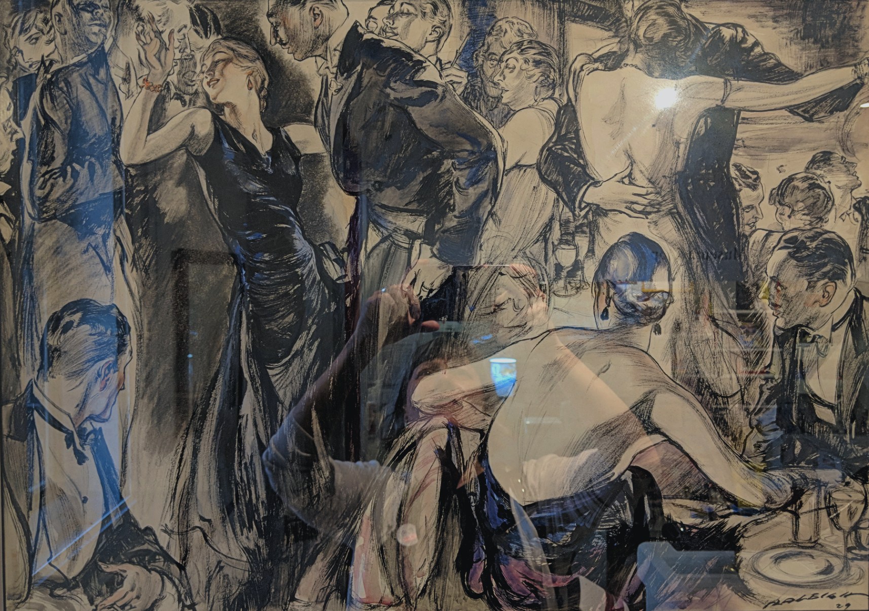 Caption: ”Lea cut in on Francis. ‘Against my better judgement,’ he said to Nina, ‘I am obliged to tell you are a sweet affair.’ Nina was in a glow of triumph. What especially engaged her was the fact that men rather than women spoke of her dress and praised it.”’