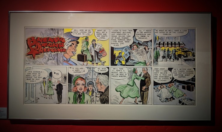 Brenda Starr, Reporter debuted in June of 1940 and was an immediate hit with young women and girls. Brenda Starr’s name came from a 1930’s debutante, Brenda Frazier, and her body, fashion sense, and persona mirrored leading Hollywood actress, Rita Hayworth, complete with matching long red hair and a curvaceous figure.
