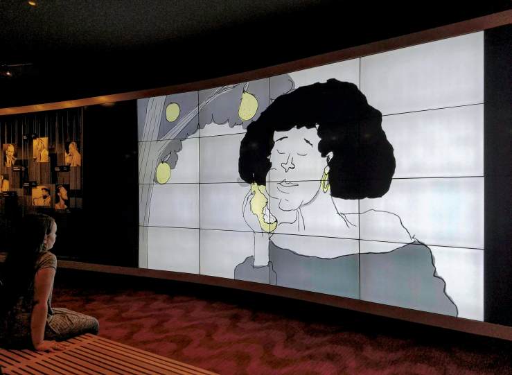 Before looking into ”The Dark Mirror”, we lingered around the Ertegun Jazz Hall Of Fame, a space honouring the life and work of jazz legends with photos of the men and women who dedicated their lives to jazz, and a video series on the media wall, designed and animated by Nate Milton. Walking by, it occurred to me that I have yet to discover New York’s jazz scene. Now, a year-and-a-half later, I’m still in the dark and not sure where to start. If you have a recommendation, please do drop me a line in the comments – I would love to find out!