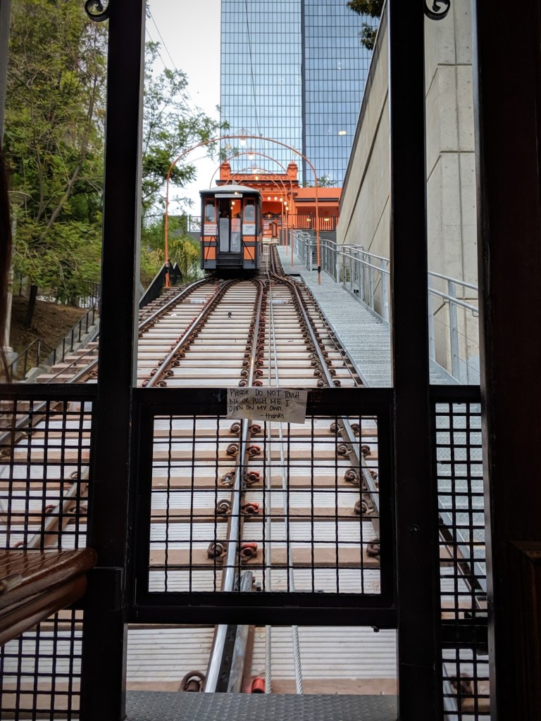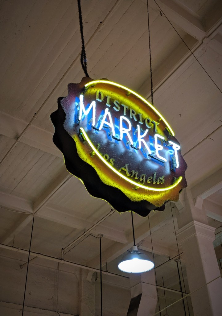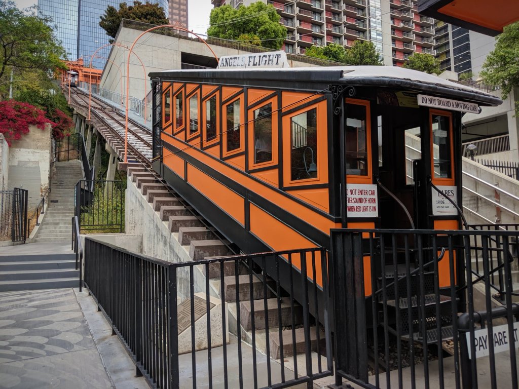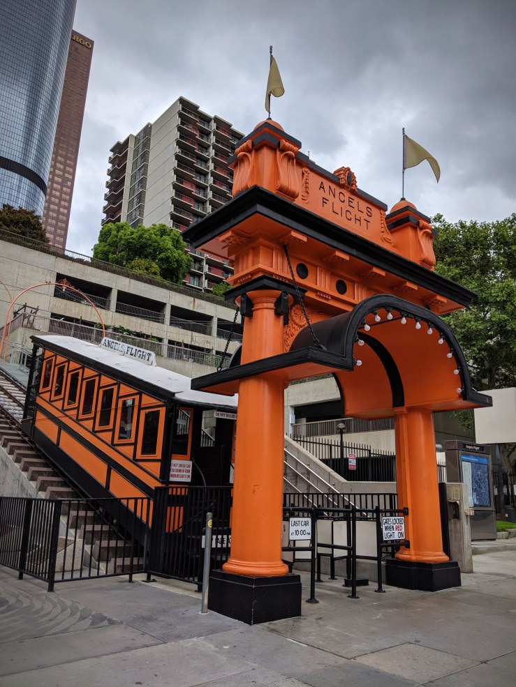 Angels Flight, Grand Central Market, Little Tokyo. Neon signs. Olivet and Sinai, the two cars that run up and down Bunker Hill. Ramen and ice-cream. Japanese Village Plaza.