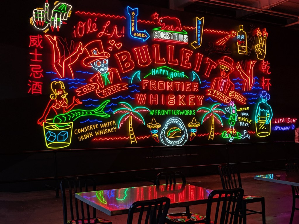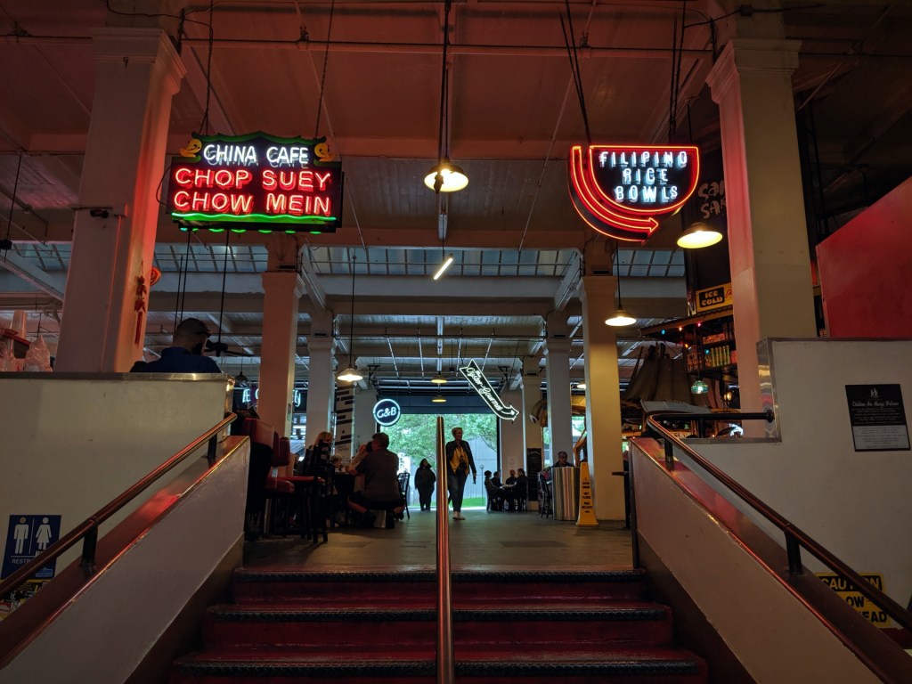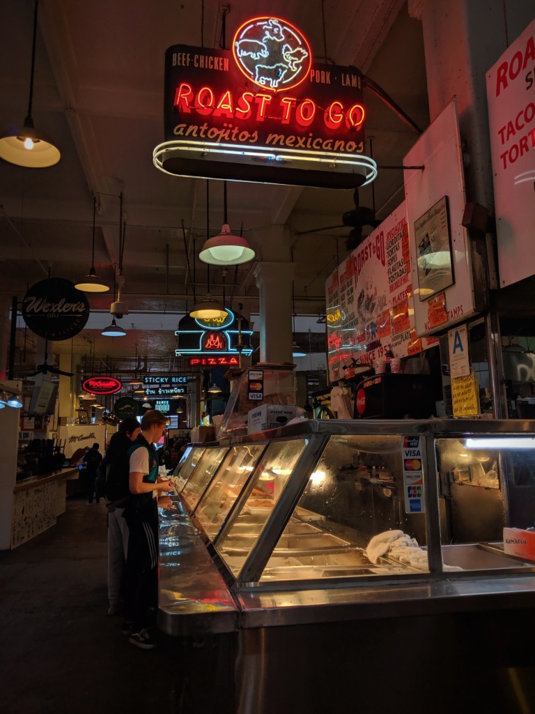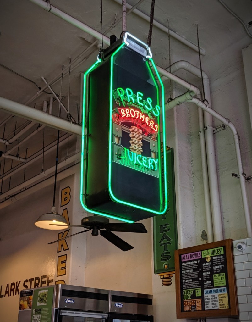 Angels Flight, Grand Central Market, Little Tokyo. Neon signs. Olivet and Sinai, the two cars that run up and down Bunker Hill. Ramen and ice-cream. Japanese Village Plaza.