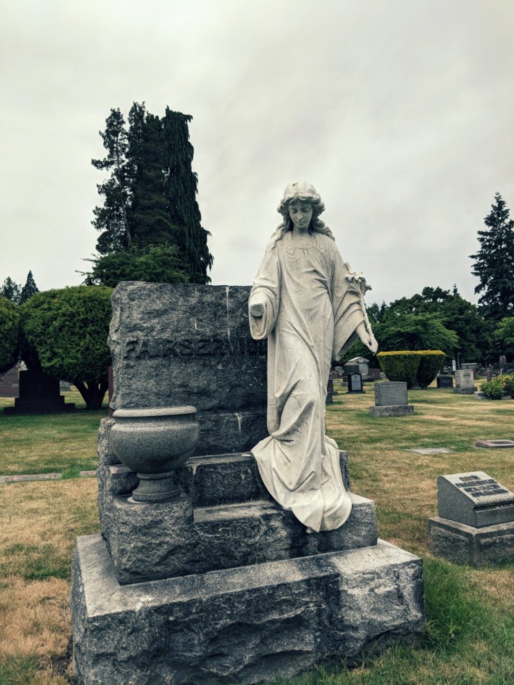 Professor Sagan was laid to rest in the serenity of Lake View Cemetery. People still walk the ascending path that leads to his grave and leave all kinds of dedications. We found, among others, a button with one of his famous quotes: “The Cosmos is all that is or was or ever will be.” Here is the rest of the quote: ”Our feeblest contemplations of the Cosmos stir us — there is a tingling in the spine, a catch in the voice, a faint sensation, as if a distant memory, of falling from a height. We know we are approaching the greatest of mysteries.” – Carl E. Sagan (1934-1996)