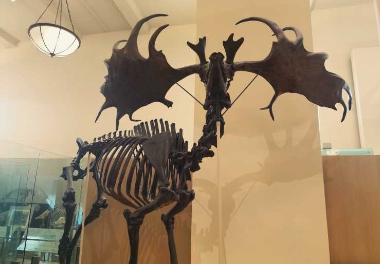 Megaloceros (Greek: μεγάλος – megalos + κέρας – keras, meaning “Great Horn”) may be the largest deer ever to have lived. It belongs to the group called artiodactyls (Greek: άρτιος – ártios + δάκτυλος – dáktylos, meaning ‘even finger/toe’) – hoofed mammals that usually have an even number of toes. Generally, only male artiodactyls have antlers. In living deer, they are used during the mating season for wrestling with other males and attracting females. Then, they are shed. This means that Megaloceros regrew its enormous antlers every year!