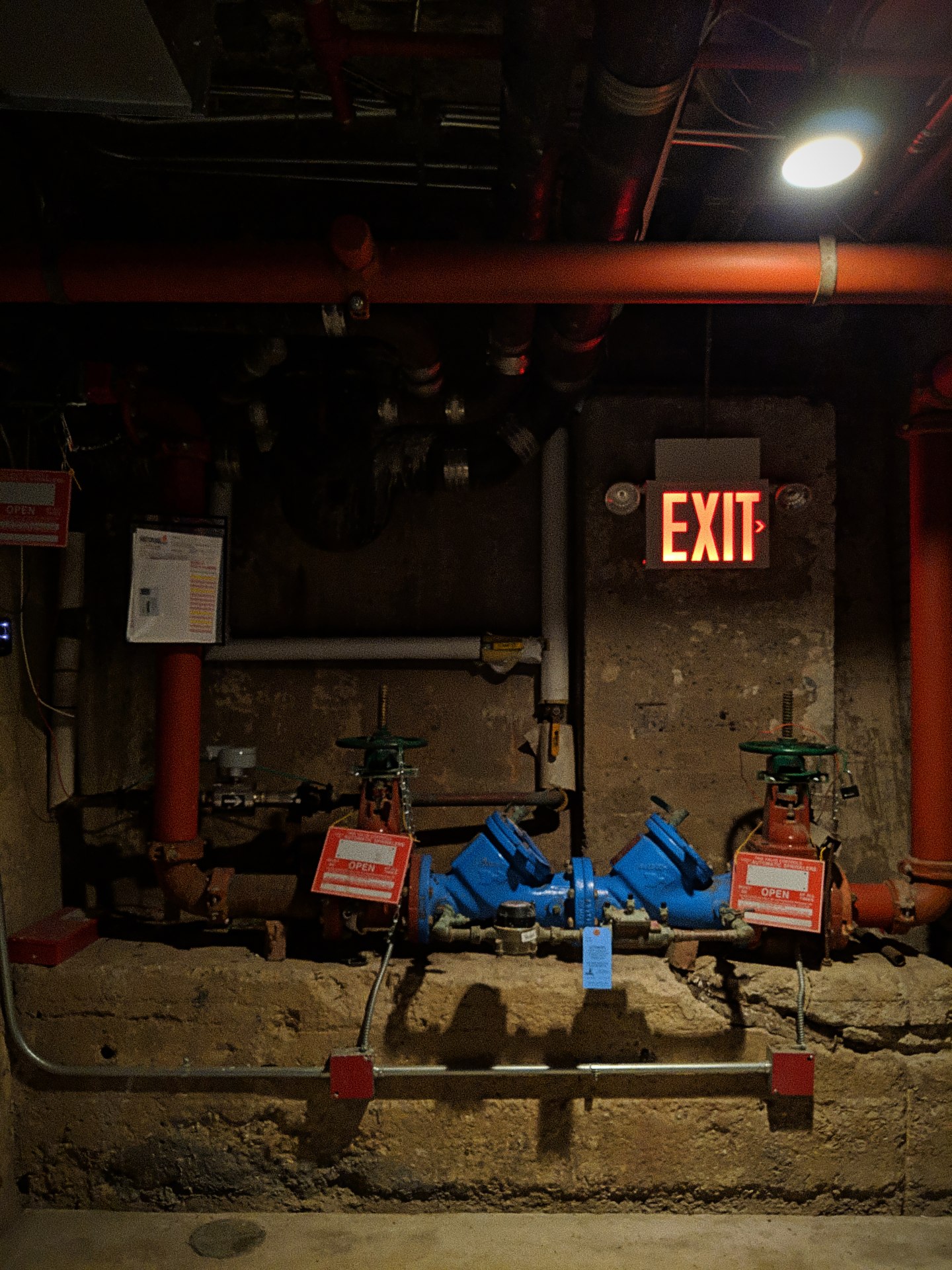 Saul Melman took it upon himself to bring a previously unnoticed element of the building back into the spotlight, by sandblasting the boiler and spending days scrubbing and cleaning the floors and surrounding area. Finally, he applied gold leaf leaving small sections of the pipes uncovered, showing their original beauty.