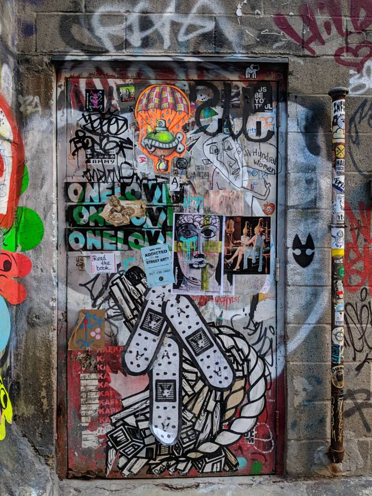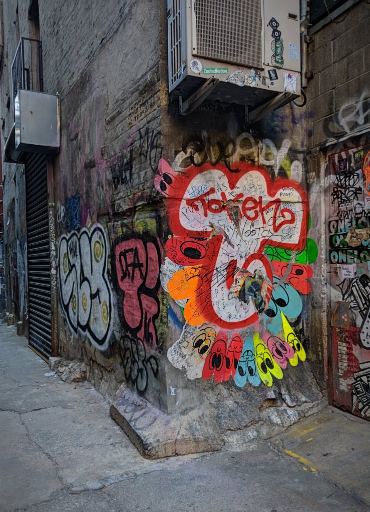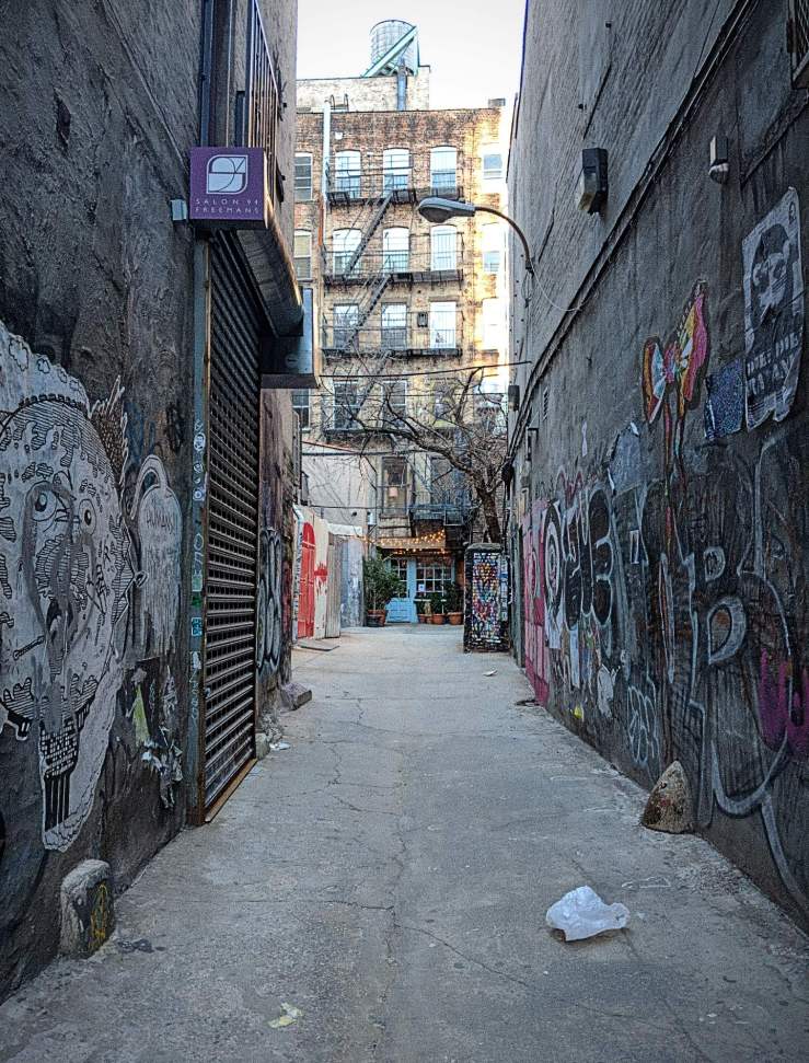 Off the Bowery at the level of Rivington Street in Lower Manhattan, there is an alley covered in graffiti. It leads to a restaurant, very popular among the young (and young at heart) New York crowd, despite (or because of) its location. I wonder how the alley will look like today, more than a year later.