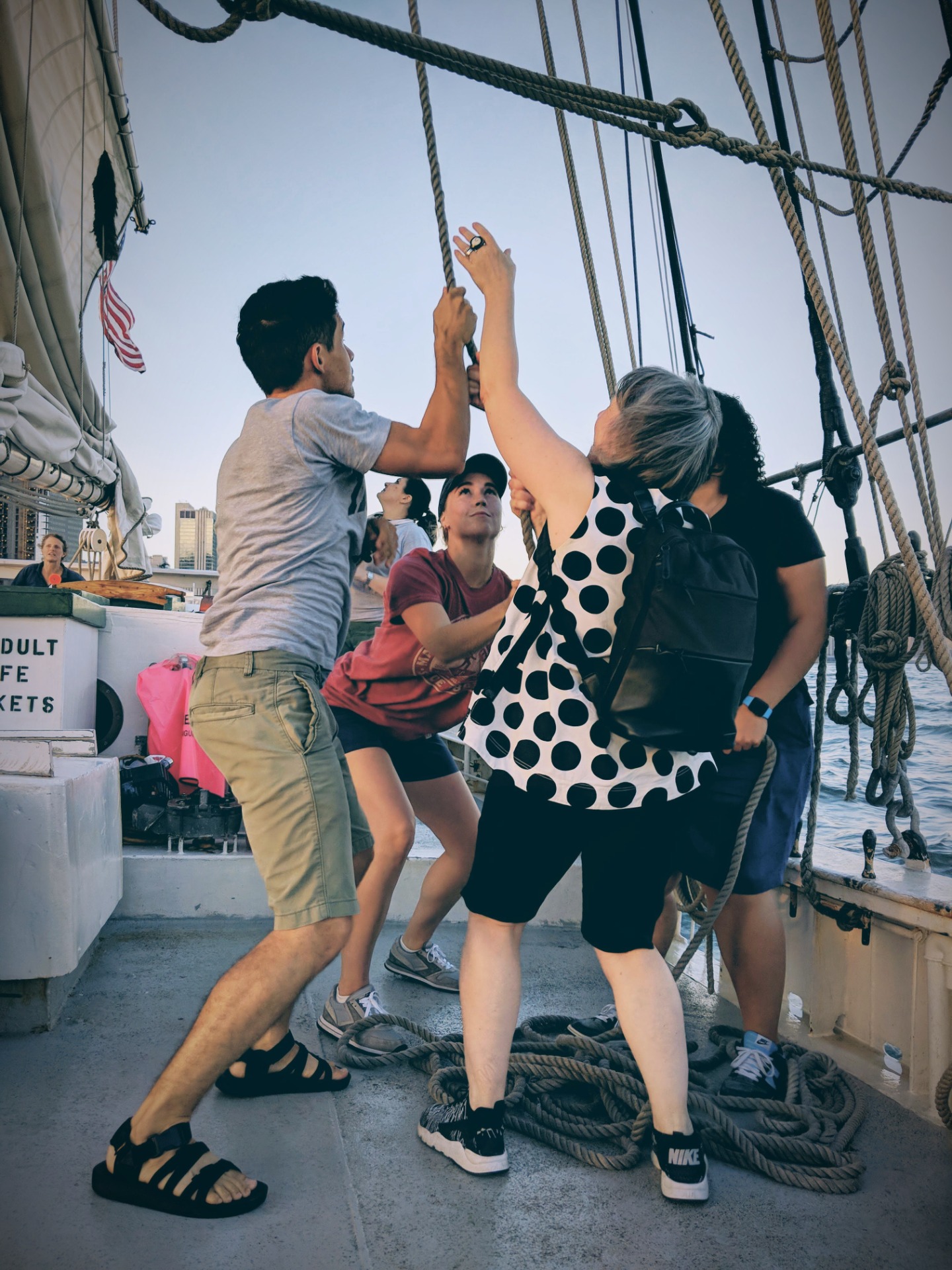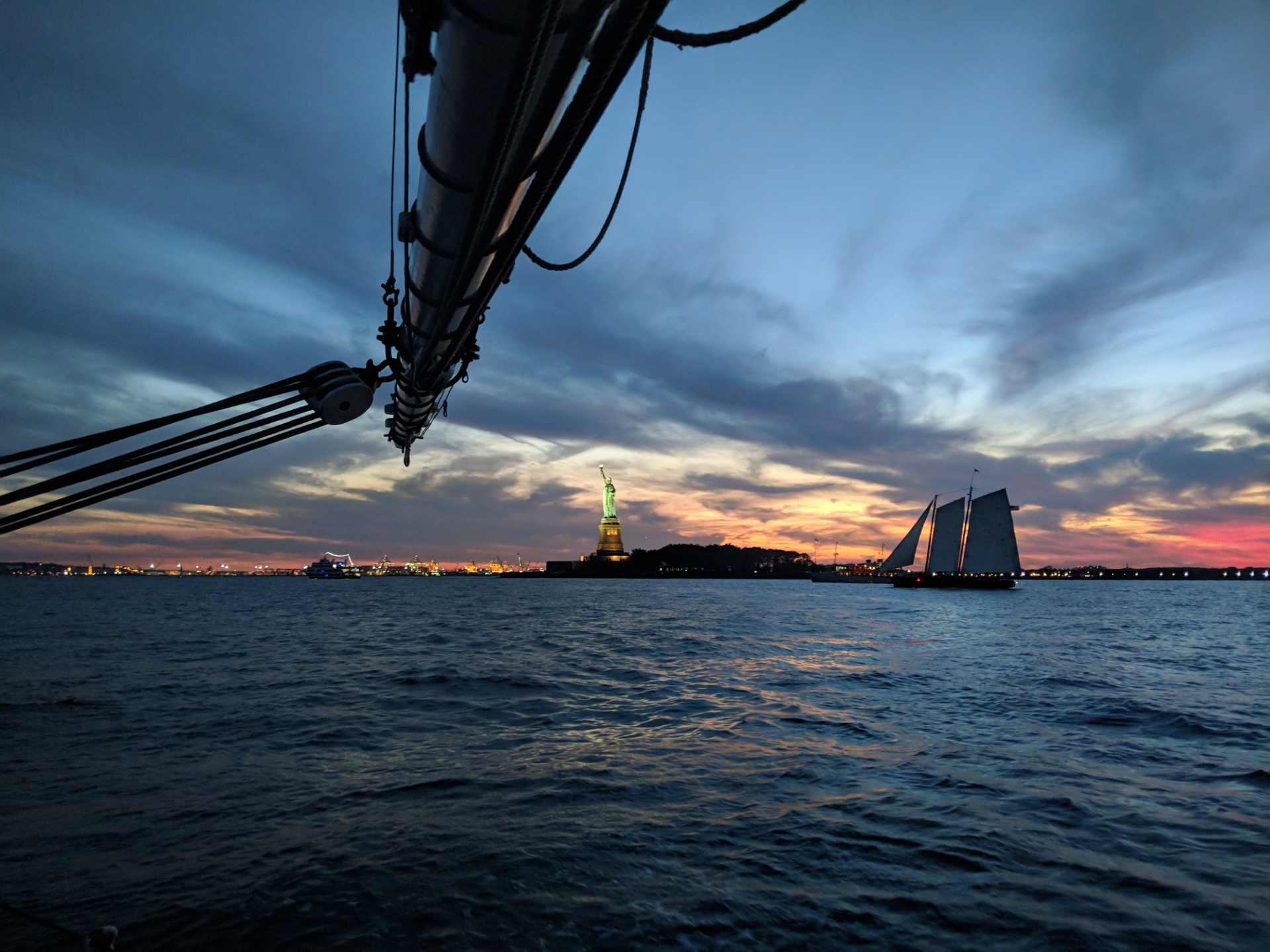 Watching Lady Liberty light up, the sky catching fire as the golden hour gave way to the blue and the blue turned to midnight; those two hours on the deck of an 1885 schooner were the most tranquil and peaceful we’d experienced in the City thus far.