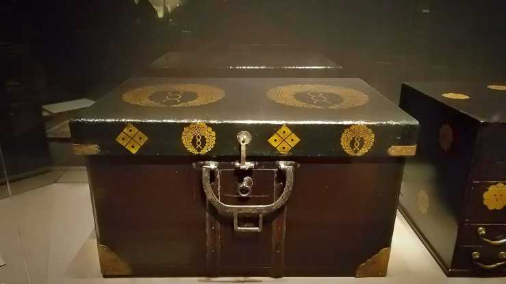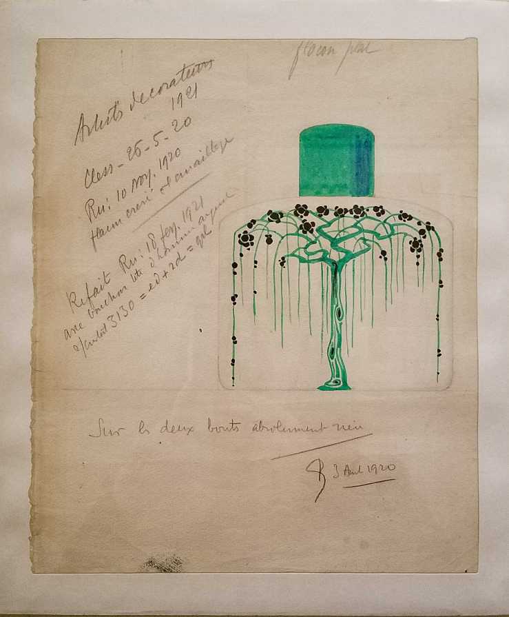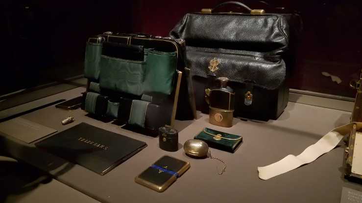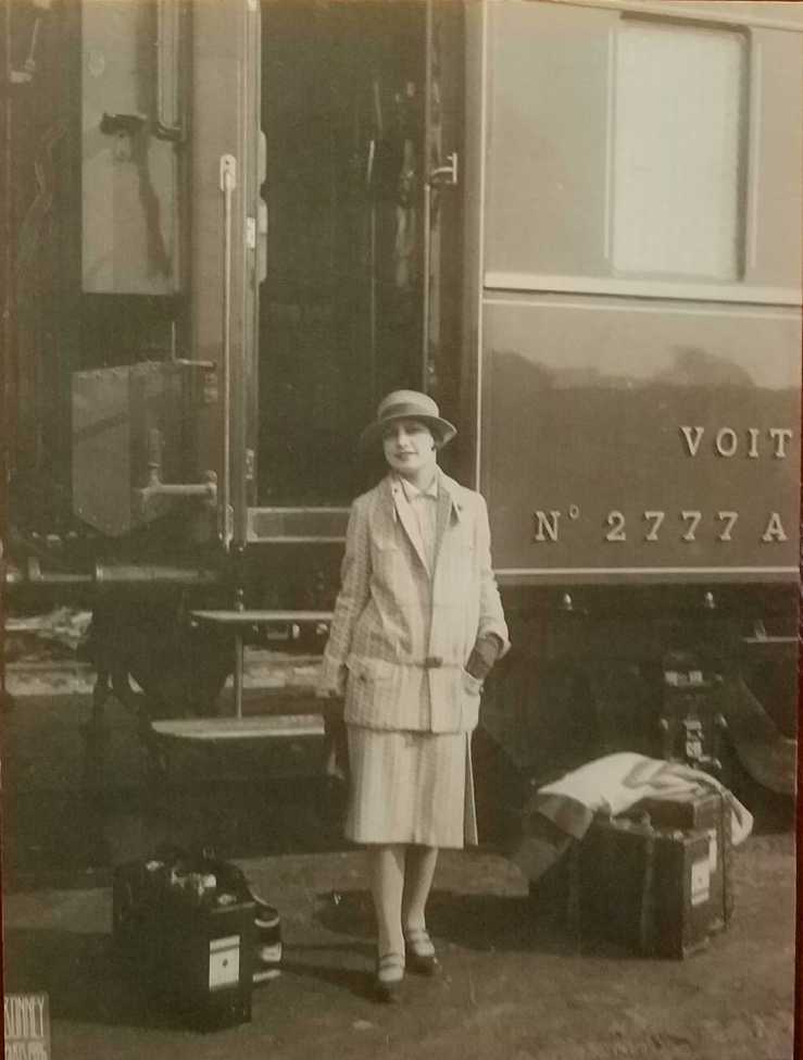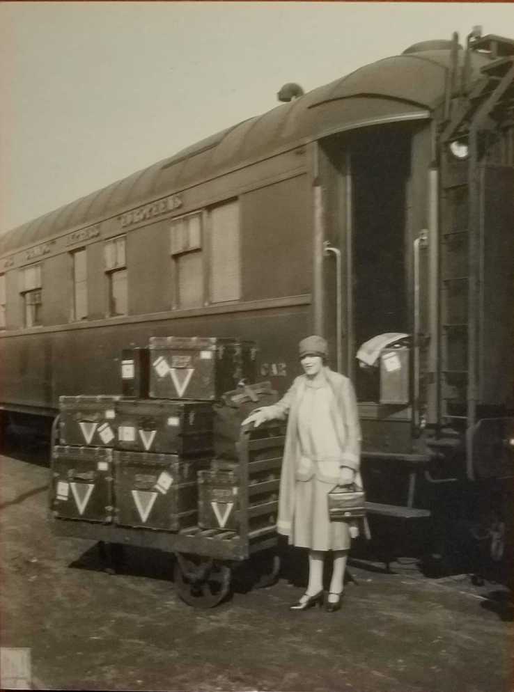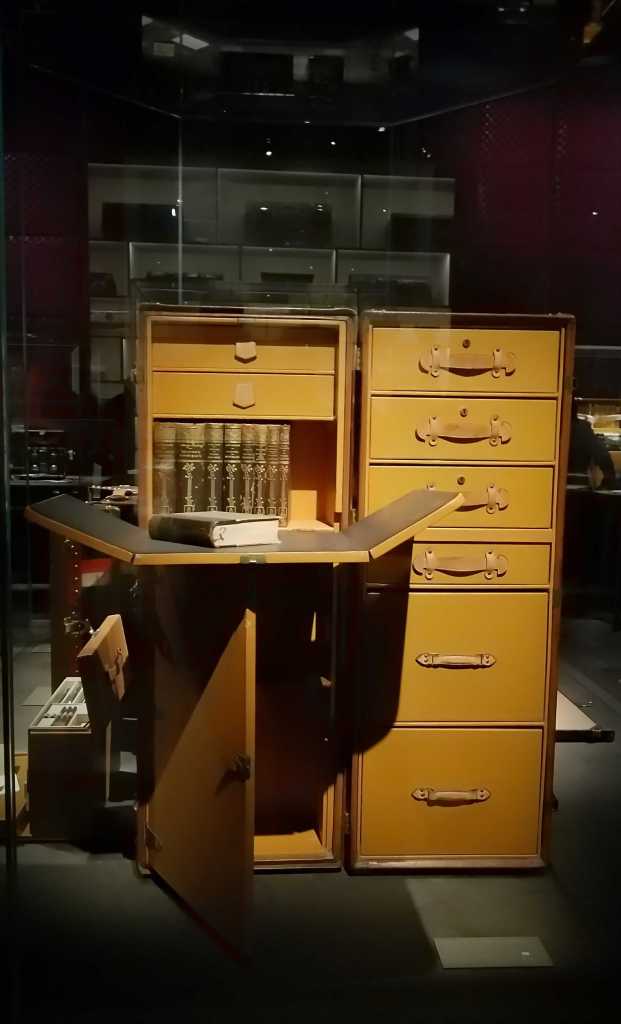 It sits on a Yellow Journey bed trunk in duralumin, 1930