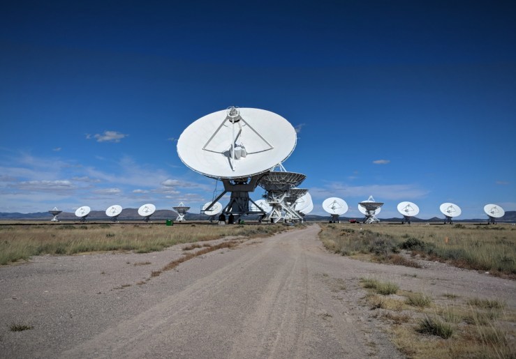 Amid this ancient, remote landscape, the Very Large Array. 27 radio antennas in a Y-shaped configuration, one of the world’s premier astronomical radio observatories, reaching out, listening to the cosmos.