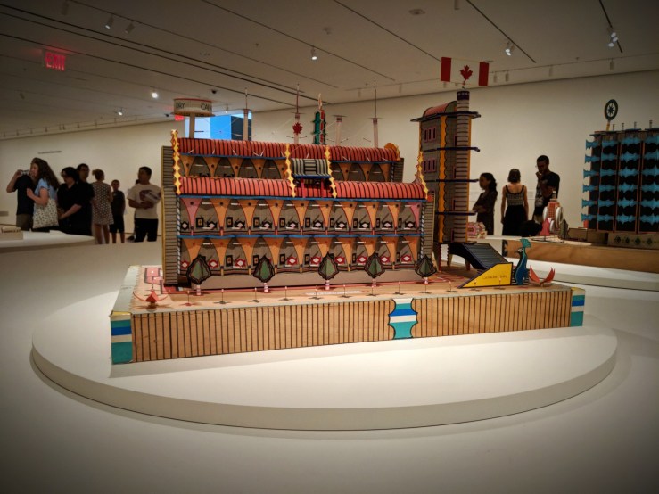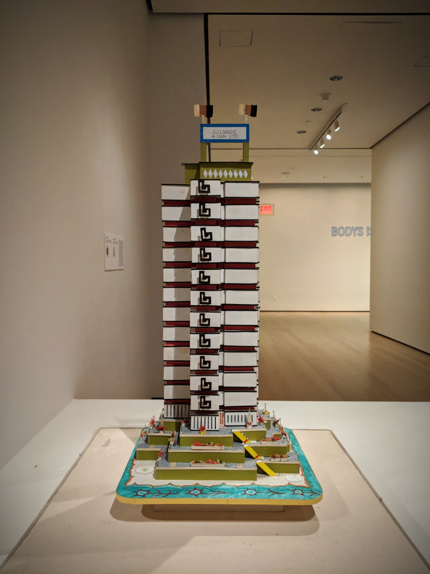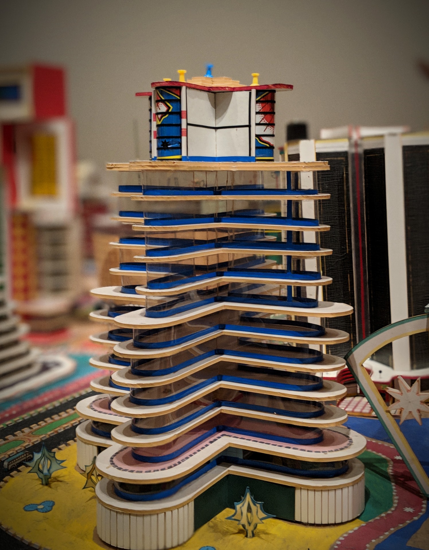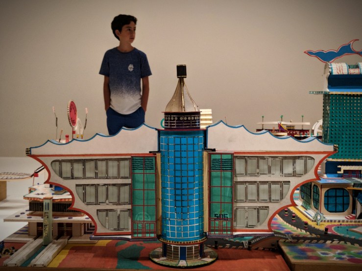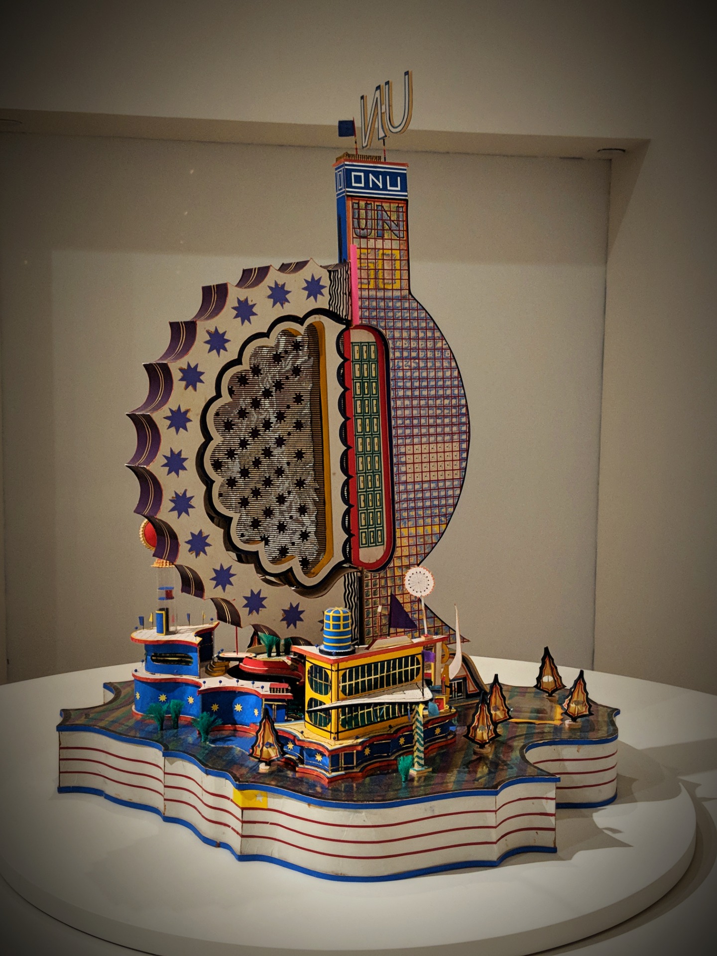 I first became aware of the work of Bodys Isek Kingelez, captivated by his intricate, colourful maquettes, at the retrospective that was presented at MoMA during the second half of 2018. There is a joyous, optimistic quality about these toy-like cities that brought a smile to the child in me; but make no mistake – these tiny sculptures, made from modest materials like glue and paper, straws and bottles, soda cans and bottle caps, are no toys. They are a delicate body of artwork, visions of utopian cities, images of a better world. Like, for example, the U.N. (1995), made in commemoration of the 50th anniversary of the United Nations, reflecting the artist’s belief in a world of democracy, peace, and cooperation. Or his Ville Fantôme (1996), a peaceful city in which doctors and police are unecessary.