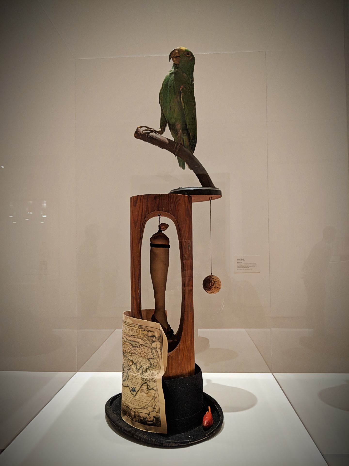 ”The title of this work, which Duchamp said he ”intended to sound like an oculist’s prescription” tells the viewer exactly how to look at it. But peering through the convex lens embedded in the work’s glass ”for almost an hour” would have a hallucinatory effect, the view being dwarfed, flipped and otherwise distorted. Meanwhile the viewer patiently following the title’s instructions is him-or herself put on display for anyone else walking by.