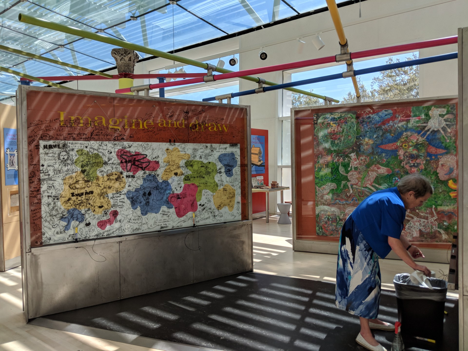 Interactive installation (people standing in front of it, can see themselves as a cubist painting)