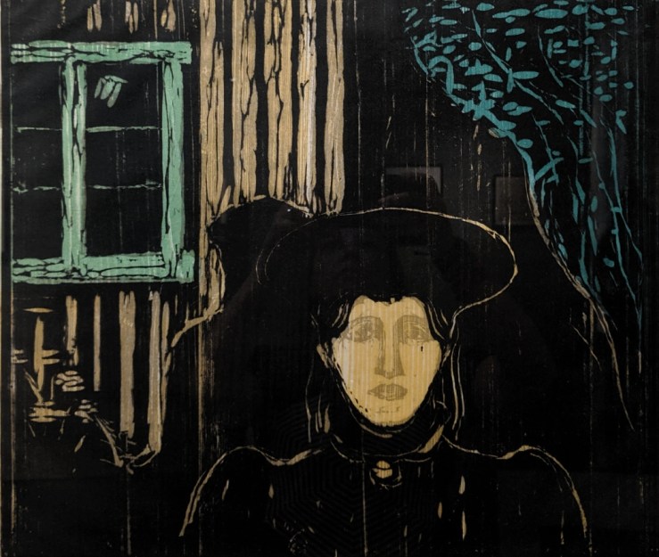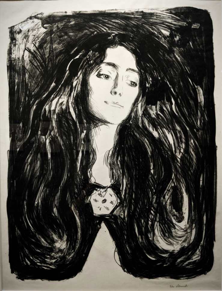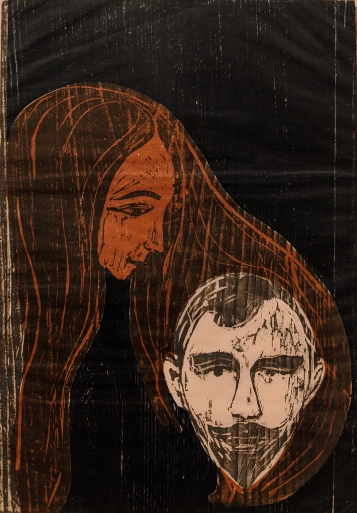 Edvard Munch || Man’s Head in Woman’s Hair, 1896. Woodcut