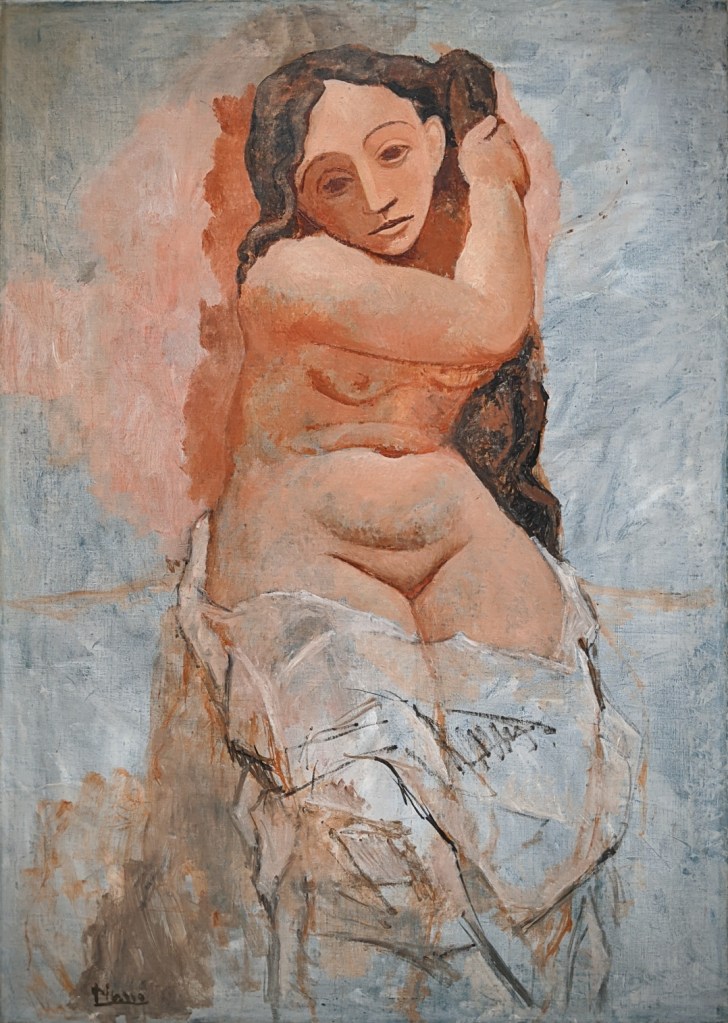 Pablo Picasso || Woman Plaiting Her Hair, 1906. Oil on canvas