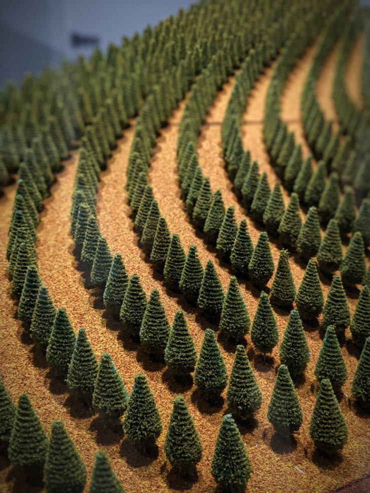 Agnes Denes Tree Mountain – A Living Time Capsule, Ylojarvi, Finland – Architectural model (mixed media), 1992-96 [detail]