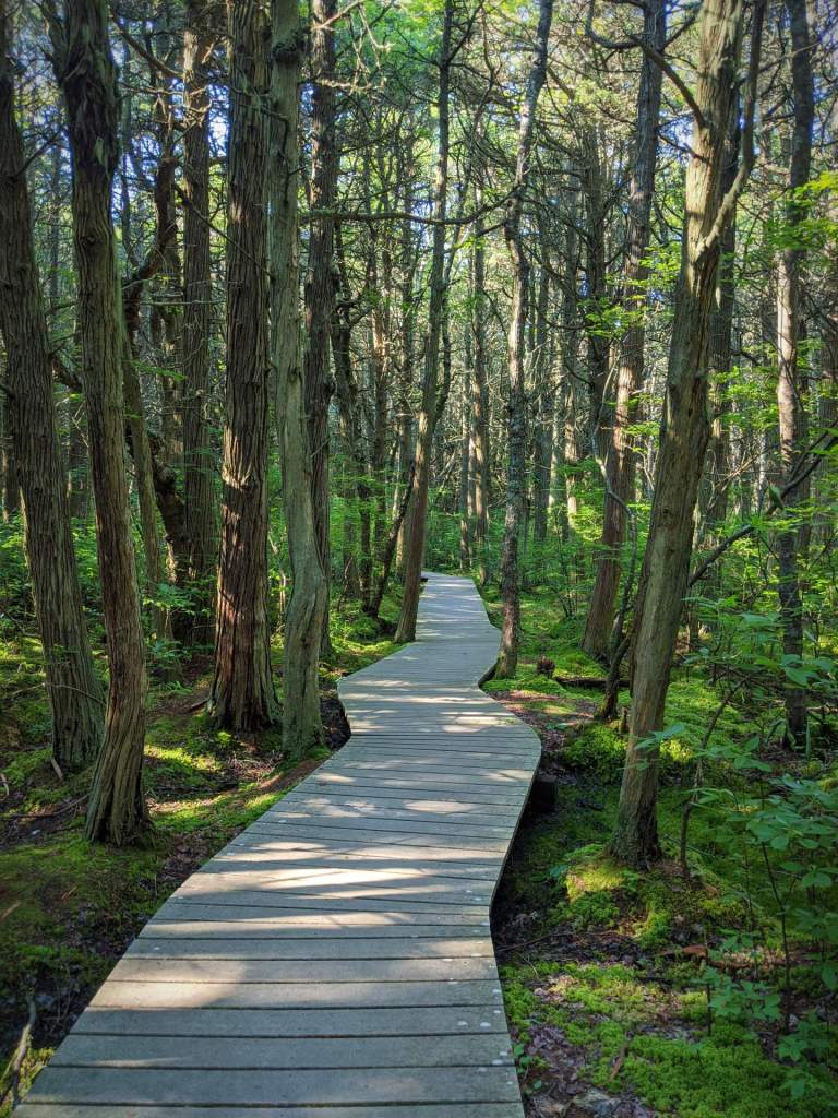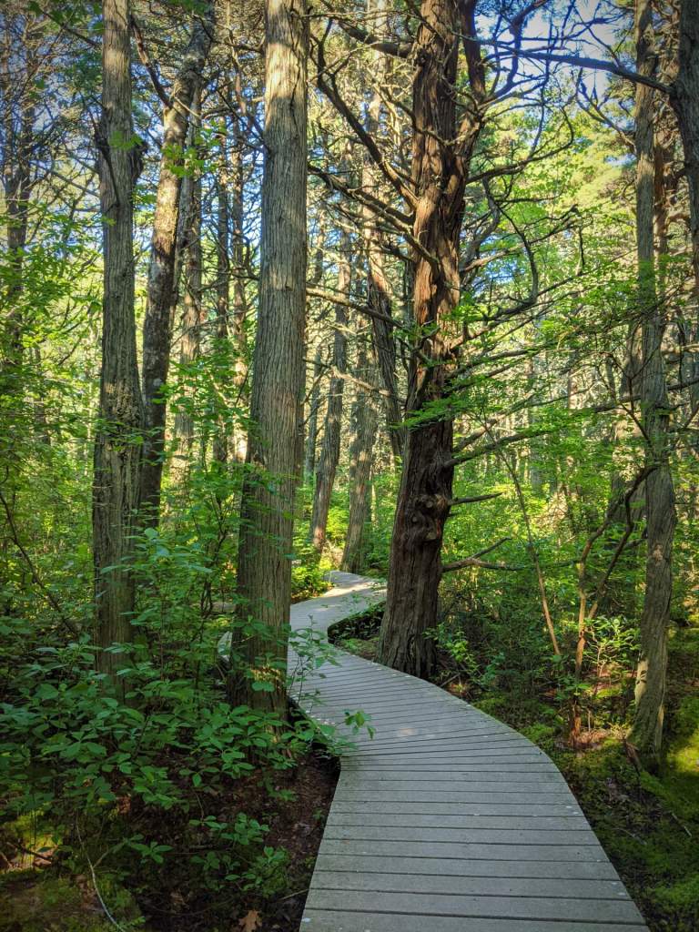 The station was decommissioned in 1917 and most of the equipment that was not salvaged, has succumbed to erosion and fallen into the sea. Still, standing here trying to imagine what Marconi would have heard back then, was fascinating. And the walk to the adjacent White Cedar Swamp Trail, a welcome and shady break from the heat.