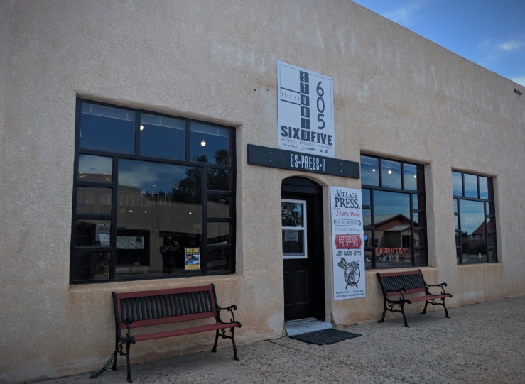 A quick stop for coffee in the last village before reaching the Very Large Array, was as surprising as the rest of the trip: Atelier Studio 605 ES•PRESS•O, is an art and printmaking space in disguise with etching presses, a studio for printmaking classes and workshops, and some fine antique presses still in use.