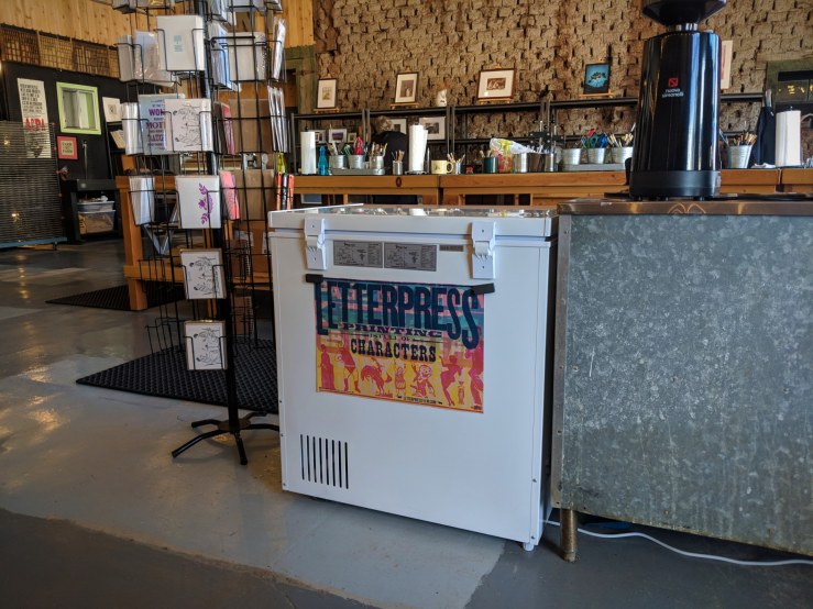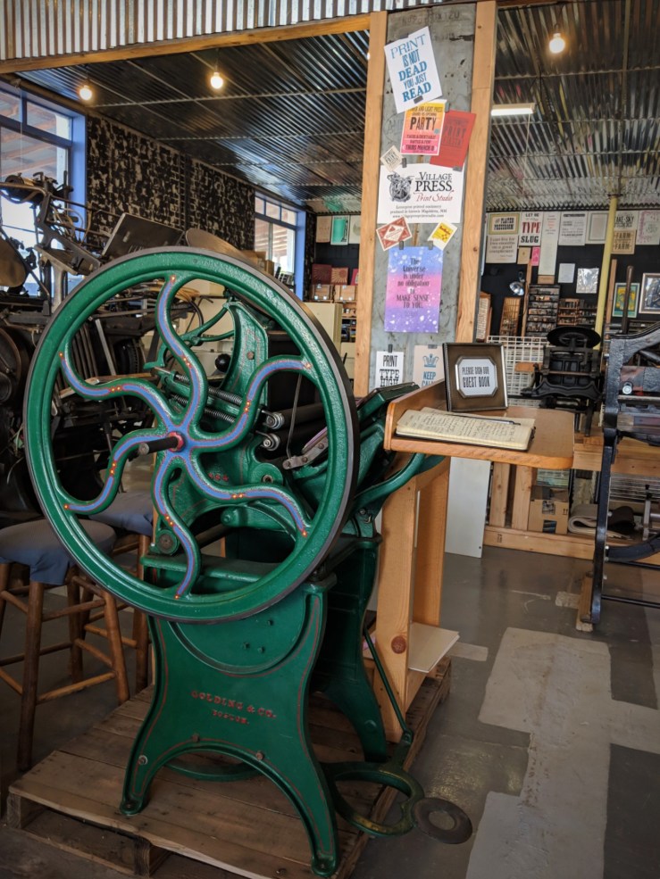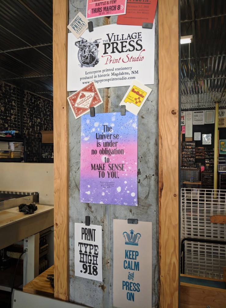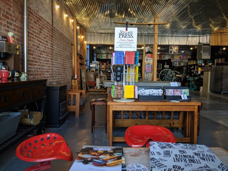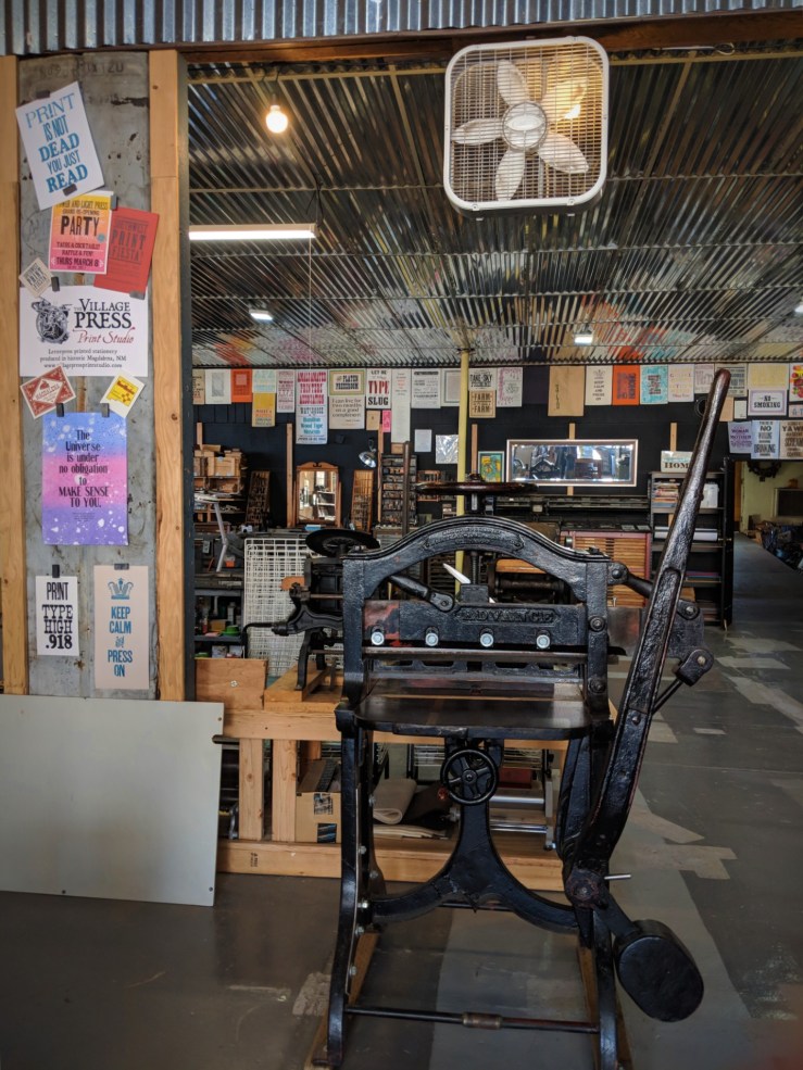 A quick stop for coffee in the last village before reaching the Very Large Array, was as surprising as the rest of the trip: Atelier Studio 605 ES•PRESS•O, is an art and printmaking space in disguise with etching presses, a studio for printmaking classes and workshops, and some fine antique presses still in use.