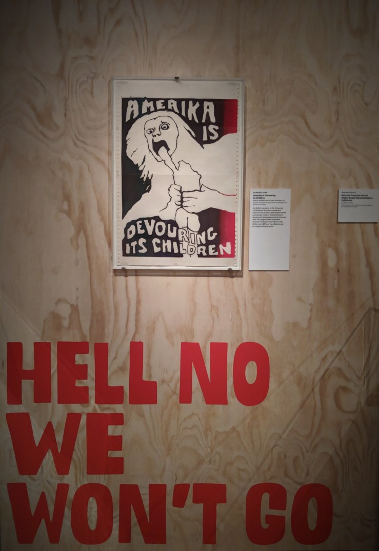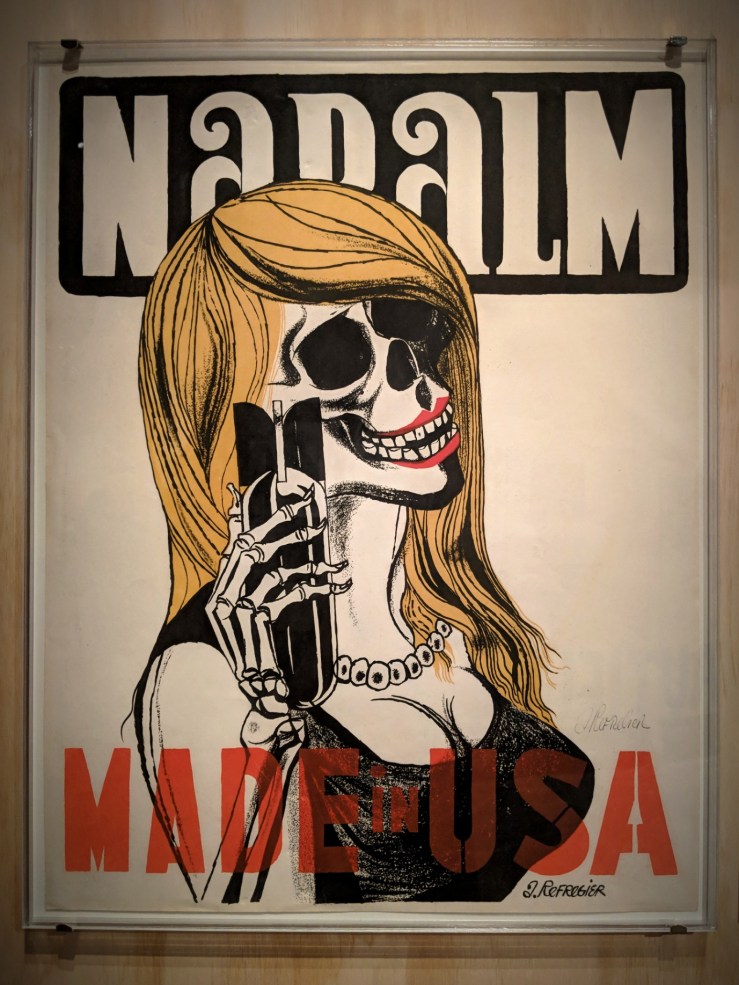 Jay Belloli, a student at the University of California, Berkeley, created this poster for the school’s 1970 student strike protesting President Richard Nixon’s bombing of Cambodia during the Vietnam War. The image is based on painter Francisco de Goya’s Saturn Devouring His Son (ca. 1820) and was silkscreened on computer listing paper.