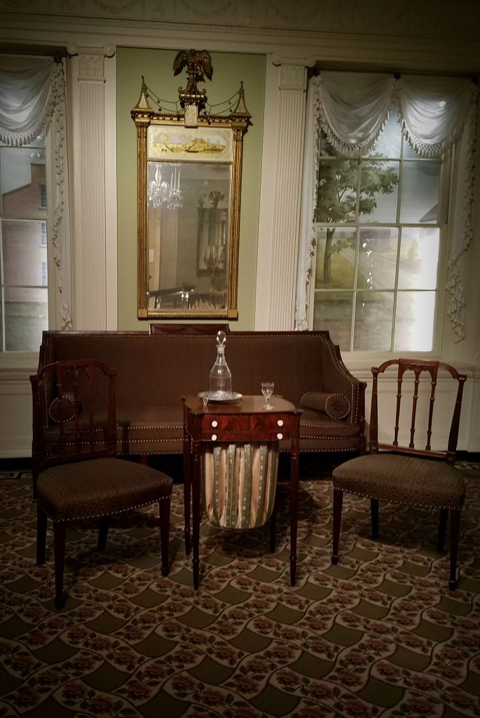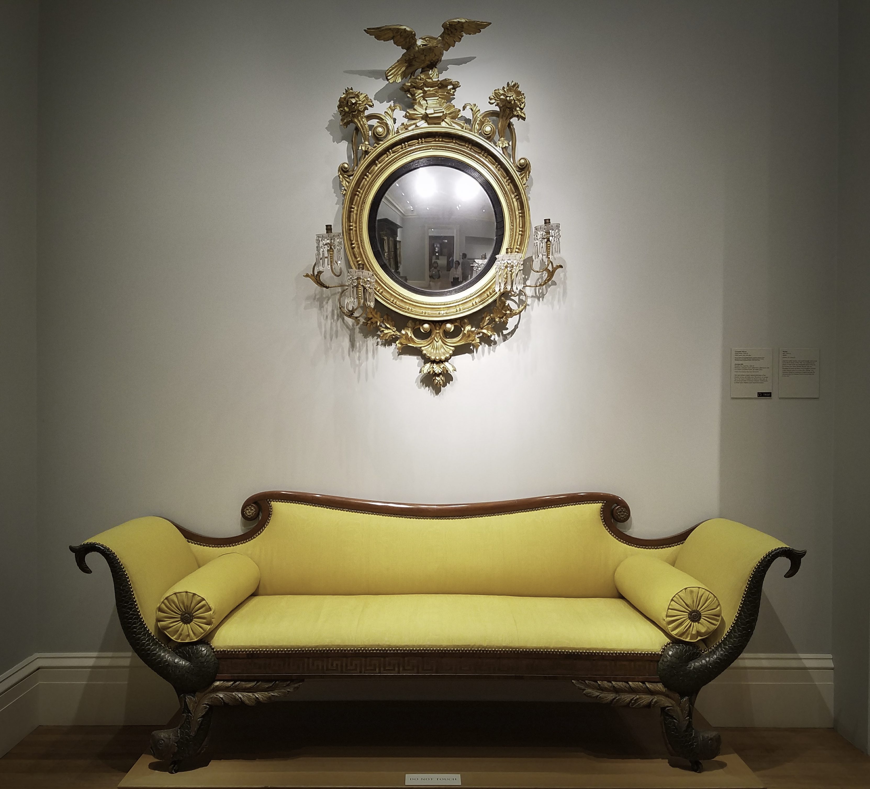 The yellow chairs and the sleek Federal era sofa:Side Chairs