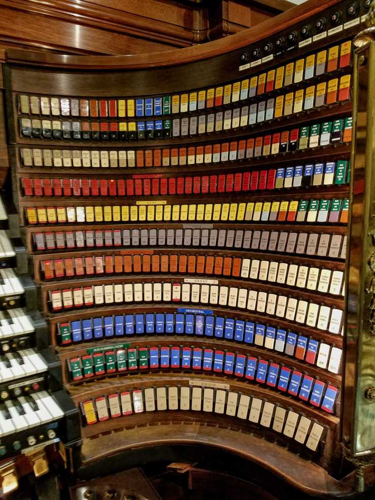 But meanwhile, enjoy a photographic behind-the-scenes historic tour of this magnificent building, which we joined by pure chance when a guide and his small group of two found us peering at the console and kindly invited us to follow them.