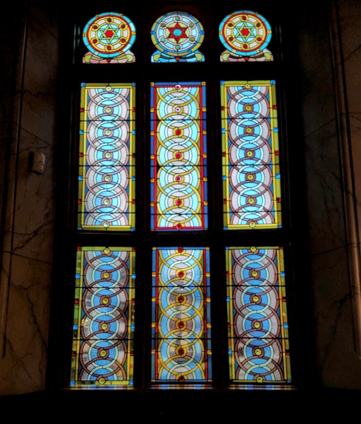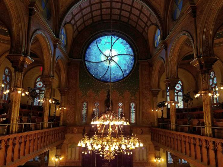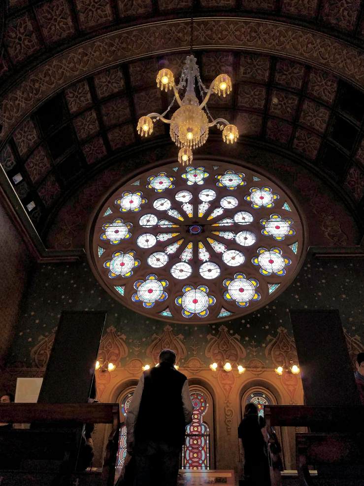 In December 2007, the restoration of the Synagogue was completed. It took twenty years to bring it back from the brink of ruin to the awe-inspiring landmark it is today, bathed in a soft light pouring from the rose glass window, on the one side, and Kiki Smith’s starry stained-glass, on the other.