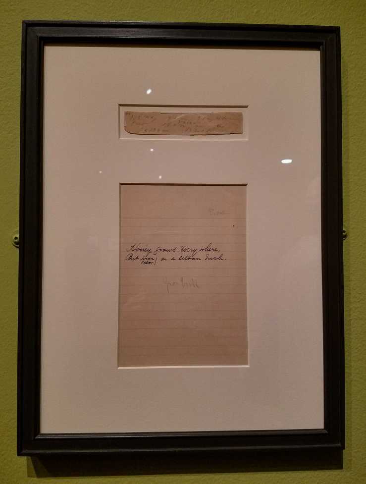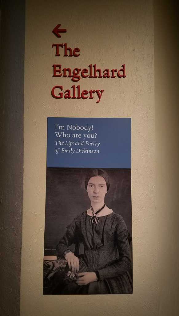 The entire gallery was lined with floral wallpaper from Emily Dickinson’s bedroom in Amherst.