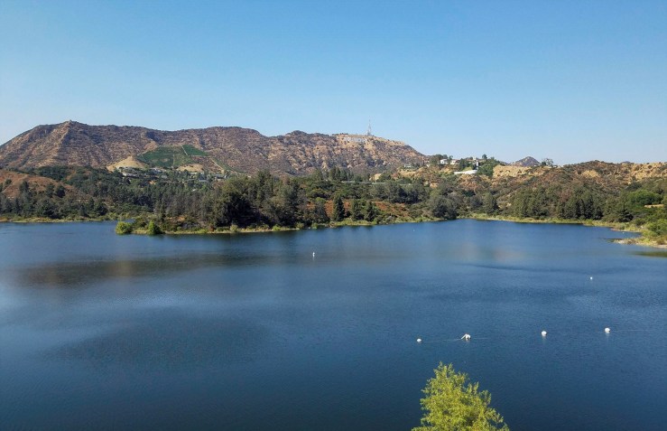 Views of the Reservoir and Hollywood Hills are from the Mulholland Dam.