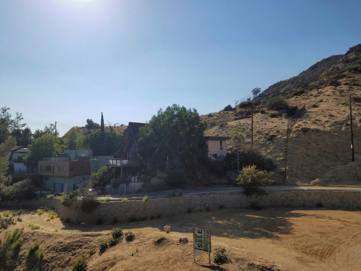 Close-ups of the Hollywood sign were taken from Mulholland Highway, at a spot called ”The Last House on Mulholland”, which is the closest one can get to the sign, by car. See that ”Sale” sign standing at an empty dirt patch? That must be where the ”Last House” will stand in the future for, as far as I understand, it is still a project (see about the concept here).