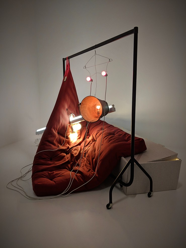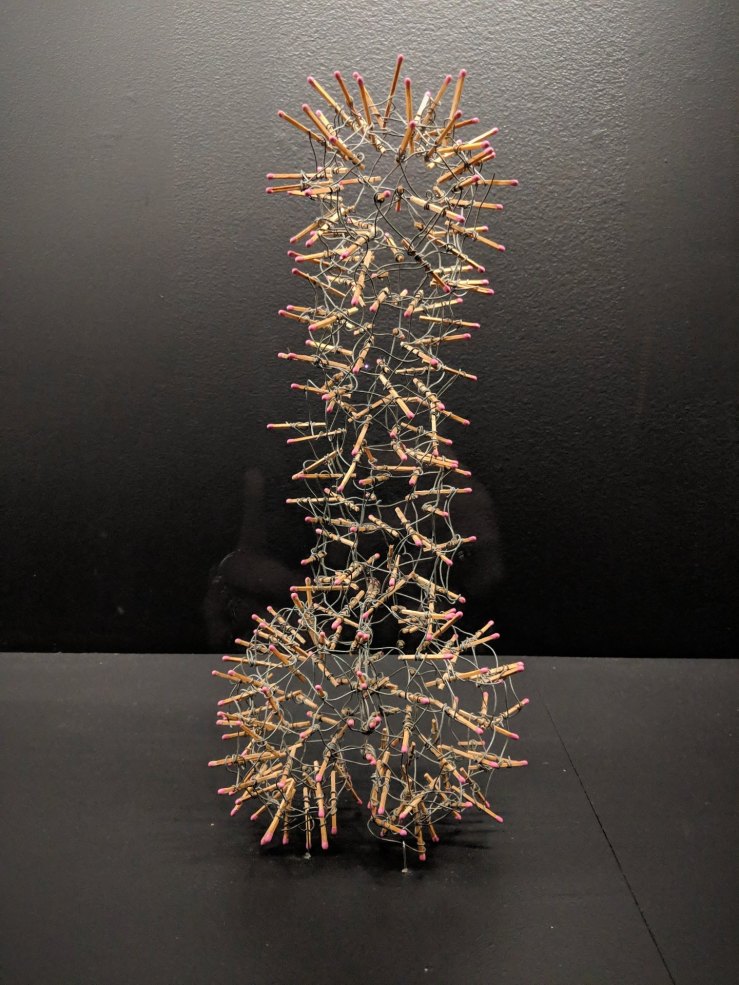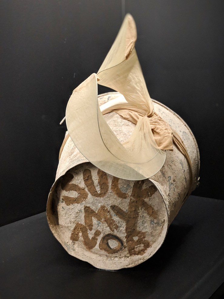 The first of dozens of works that Cornell made in honor of famous ballerinas, this box pays homage to Marie Taglioni, an acclaimed nineteenth-century dancer of Italian origin, who, according to the legend inscribed in the box’s lid, kept an imitation ice cube in her jewelry box to commemorate the time she danced in the snow at the behest of a Russian highwayman. The box is infused with erotic undertones—both in the tactile nature of the glass cubes, velvet, and rhinestone necklace (purchased at a Woolworth’s dime store in New York) and in the incident itself, in which Taglioni reportedly performed on an animal skin placed across a snowy road. Adding to the intimacy of this delicate construction, the glass cubes were designed to be removed, revealing a hidden recess below that contains two beaded necklaces and rhinestone chips placed on a mirrored surface and seen through blue-tinted glass. [source: MoMA]