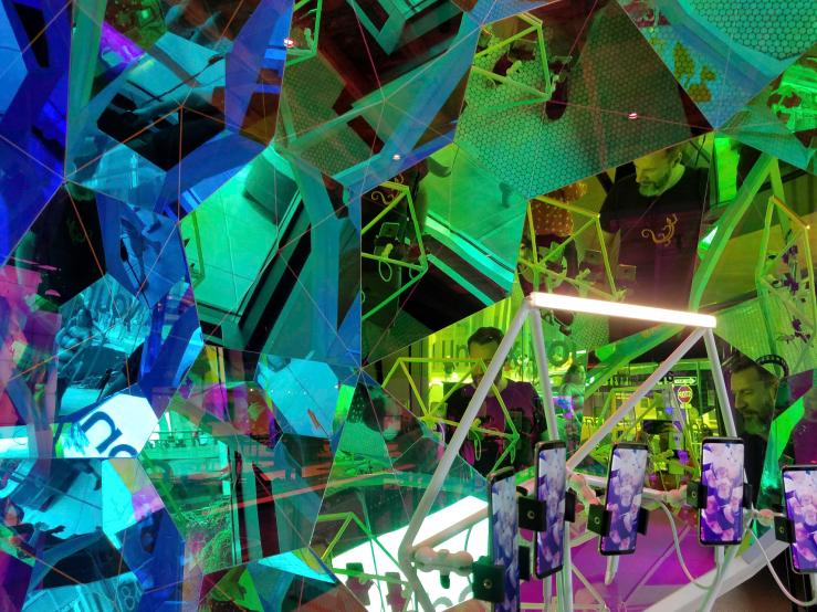 Samsung’s only concept store in NYC is located in the Meatpacking District. More concept than store, since nothing there is for sale (except coffee and treats), a kind of event space where one can get first hand info on Samsung’s latest developments and equipment and there is always an interesting happening, like our selfies being taken by multiple Galaxy S8’s and then projected on a giant screen as prismatic honeycombs.