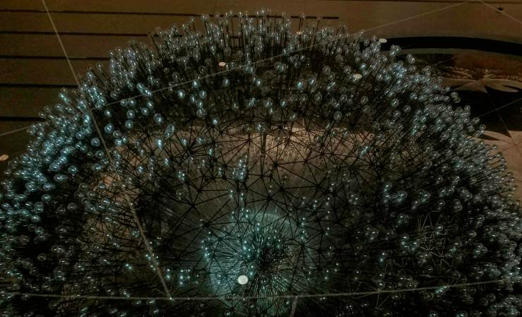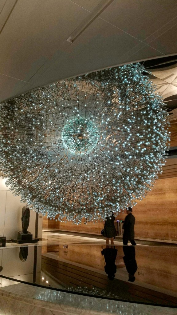 As if to prepare us for the experience, an explosion of light at the lobby: Lucent, an installation by Wolfgang Buttress, representing the 3,106 brightest stars visible with the naked eye from the Earth’s Northern hemisphere.